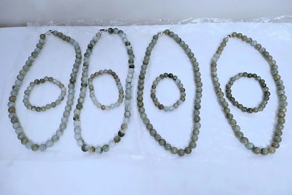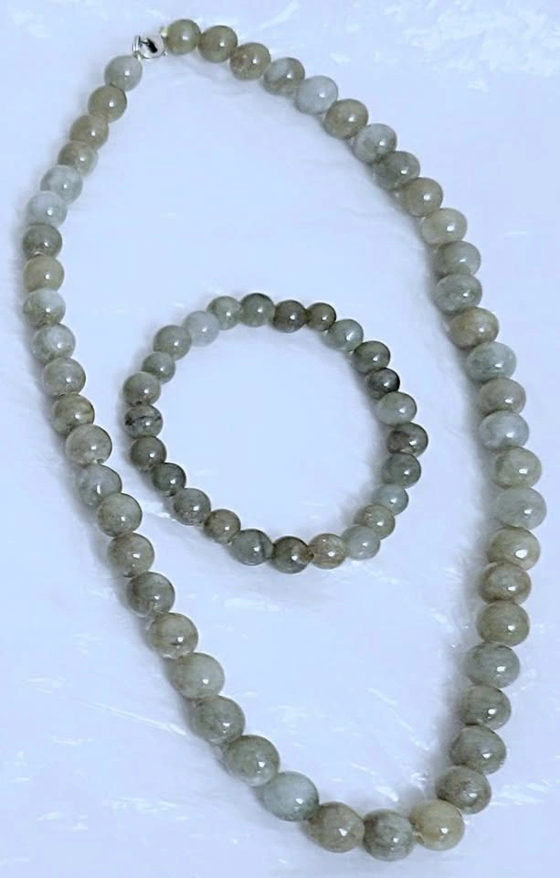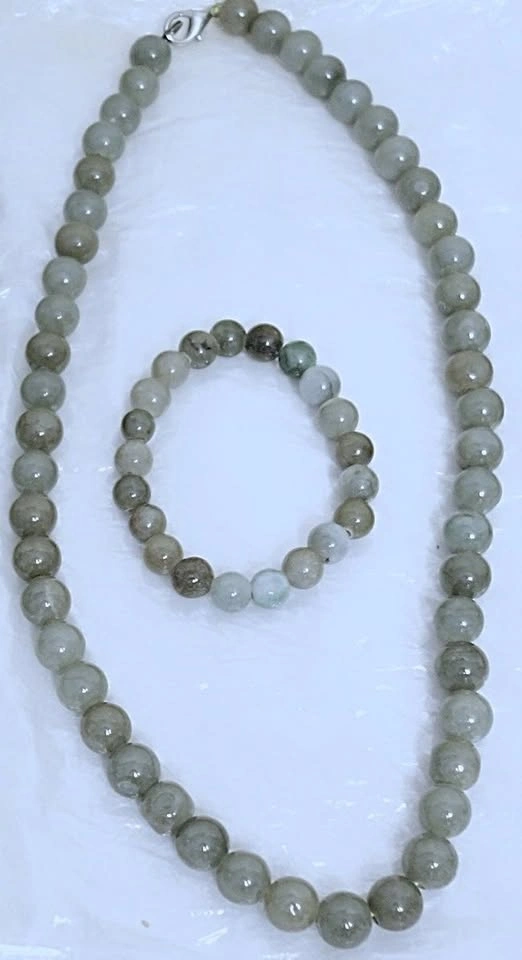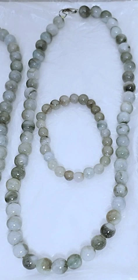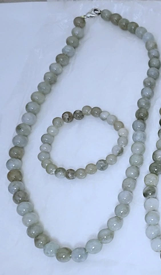 I'm offering 4 sets of necklaces and bracelets made from genuine gemstones for a ridiculously low price of only $30 for all 8 pieces. The only issue is that I'm not able to pinpoint which gemstone exactly they are made from. I'm thinking it could be an assortment of jadeite rough, aventurine, amazonite or something else. The stones actually appear more green in person. For some reason the lighting washed out some of the colour so they appear more dull and faded in the pics.