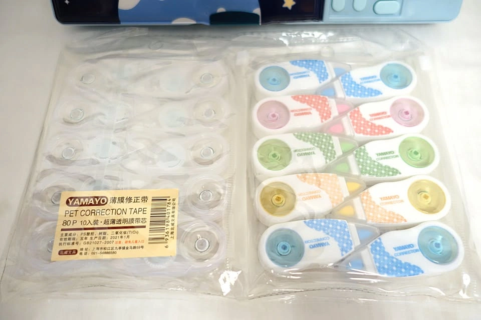 I'm also including as a free bonus, a pack of 20 Yamayo mini whiteout correction tapes (10 white, 10 clear) that will surely come in handy during the school year. Additional packs of 20 are available for purchase for $10 each - which is what you would normally expect to pay for 3 or 4 at a retail store.