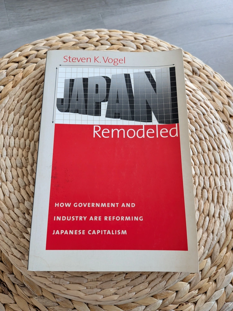 Selling the book "Japan Remodeled: How Government and Industry Are Reforming Japanese Capitalism" by Steven K. Vogel. It's a great read for anyone interested in Japanese economics and politics!