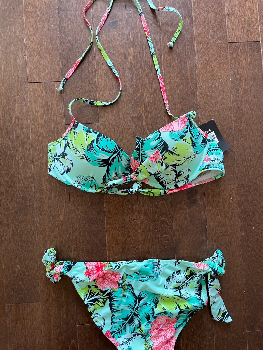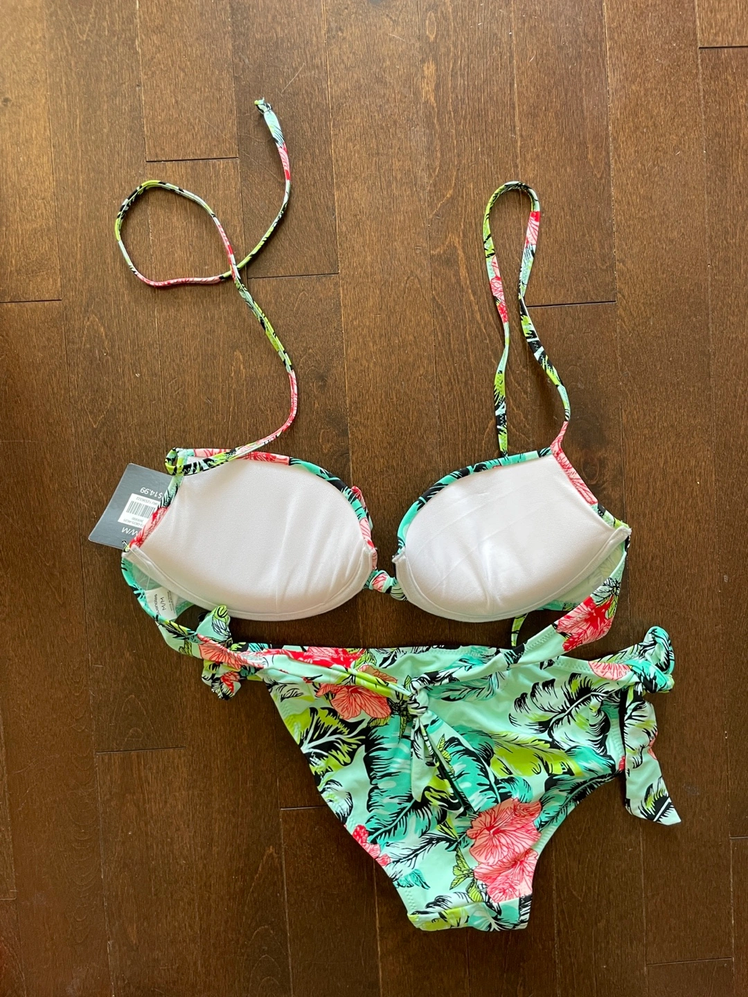 Padded push up bikini set with a vibrant floral pattern. It's perfect for the summer. The bikini is new with tags