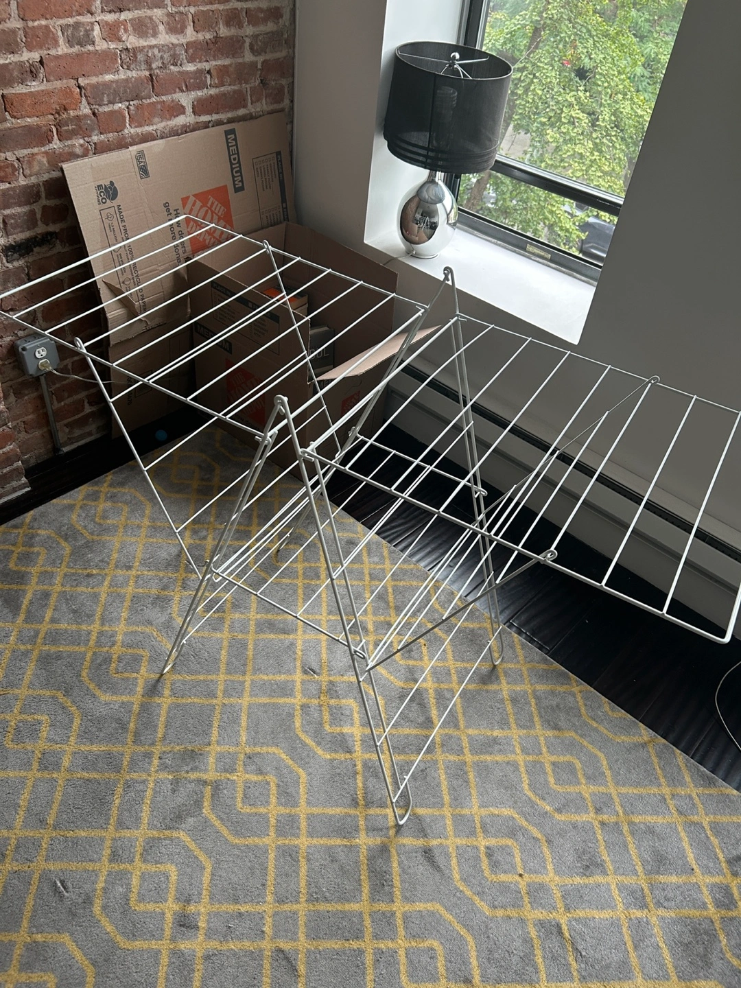 Selling a white metal clothes drying rack. It's in great condition and ready to help you save on dryer costs! Perfect for apartments or anyone looking to air dry their clothes.