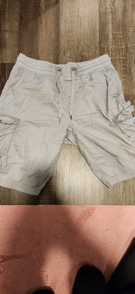 Get ready for summer with this lot of men's shorts, all in size 36, 38. There's a pair of light grey cargo shorts, a pair of charcoal grey cargo shorts from CSG, and a pair of black denim cutoff shorts. These shorts are in good used condition and ready for a new home.