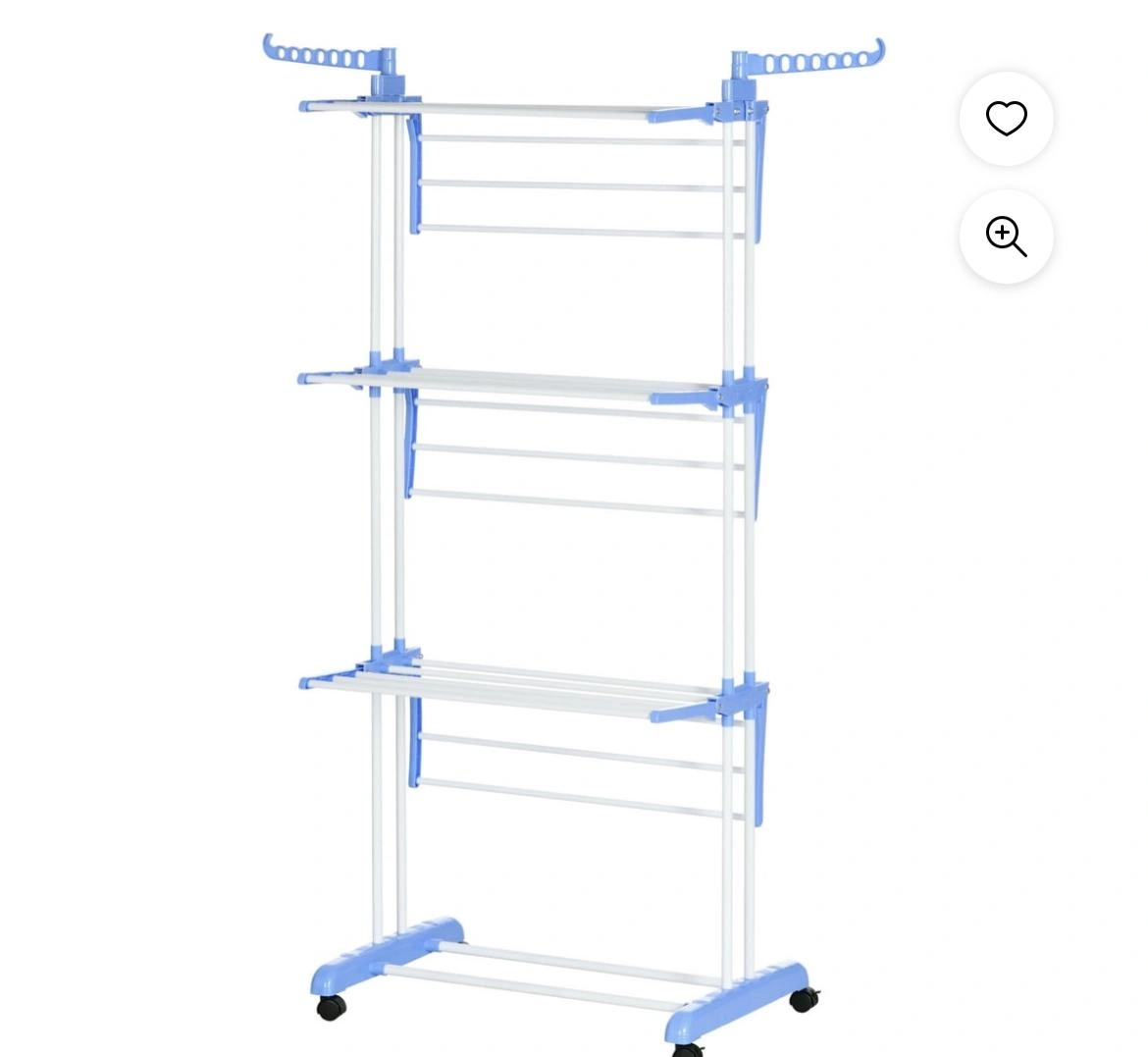 HOMCOM 3-Tier Clothes Drying Rack - Blue/White🥕