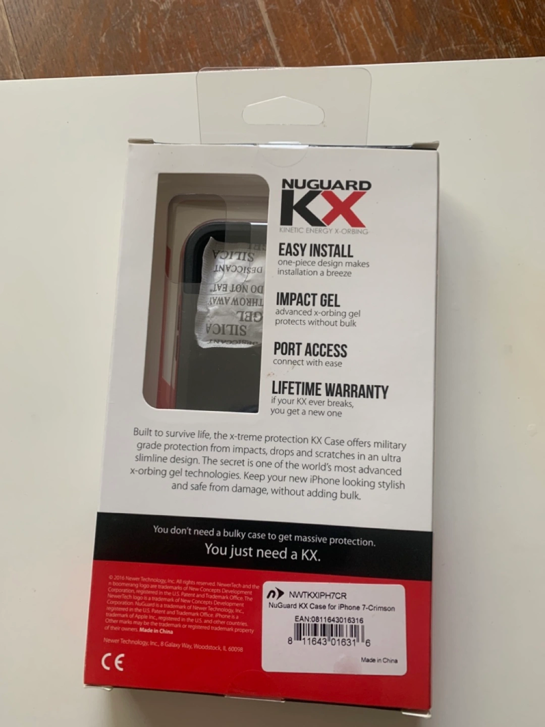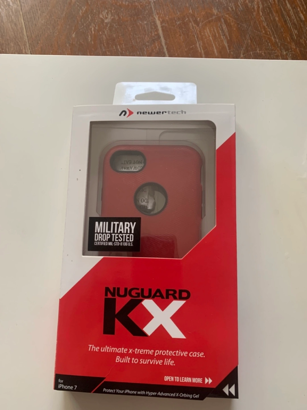 This is a brand new NewerTech NuGuard KX case for an iPhone 7 in Crimson. It's the ultimate x-treme protective case, built to survive life. The case offers military-grade protection from impacts, drops, and scratches in an ultra-slimline. Brand New, never opened