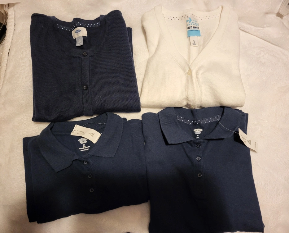Brand new with tags. All clothes in bundle are Size: Medium Bundle includes: -Navy Polo Dress -Navy Cardigan -Navy Polo Long Sleeve -White Cardigan