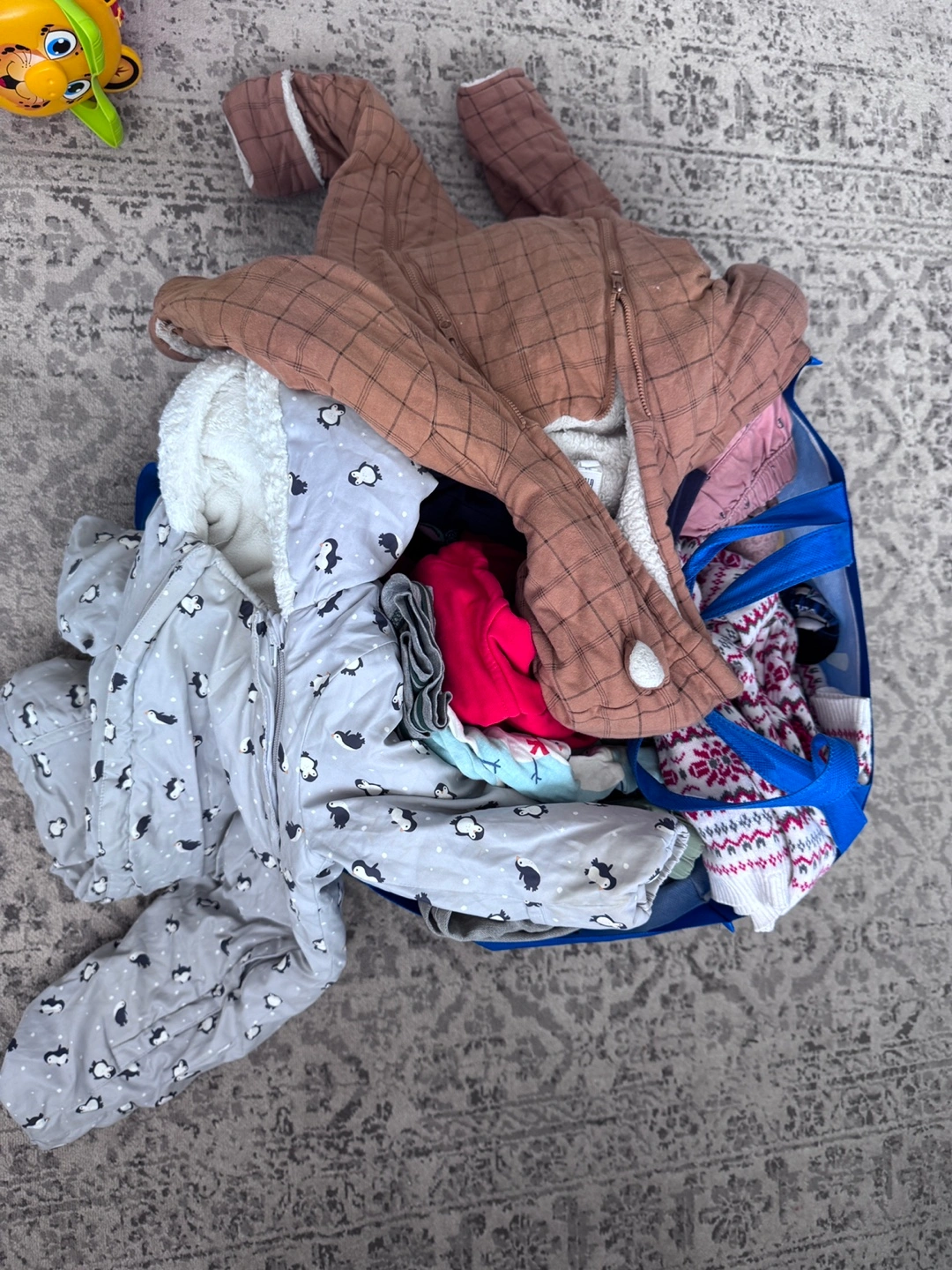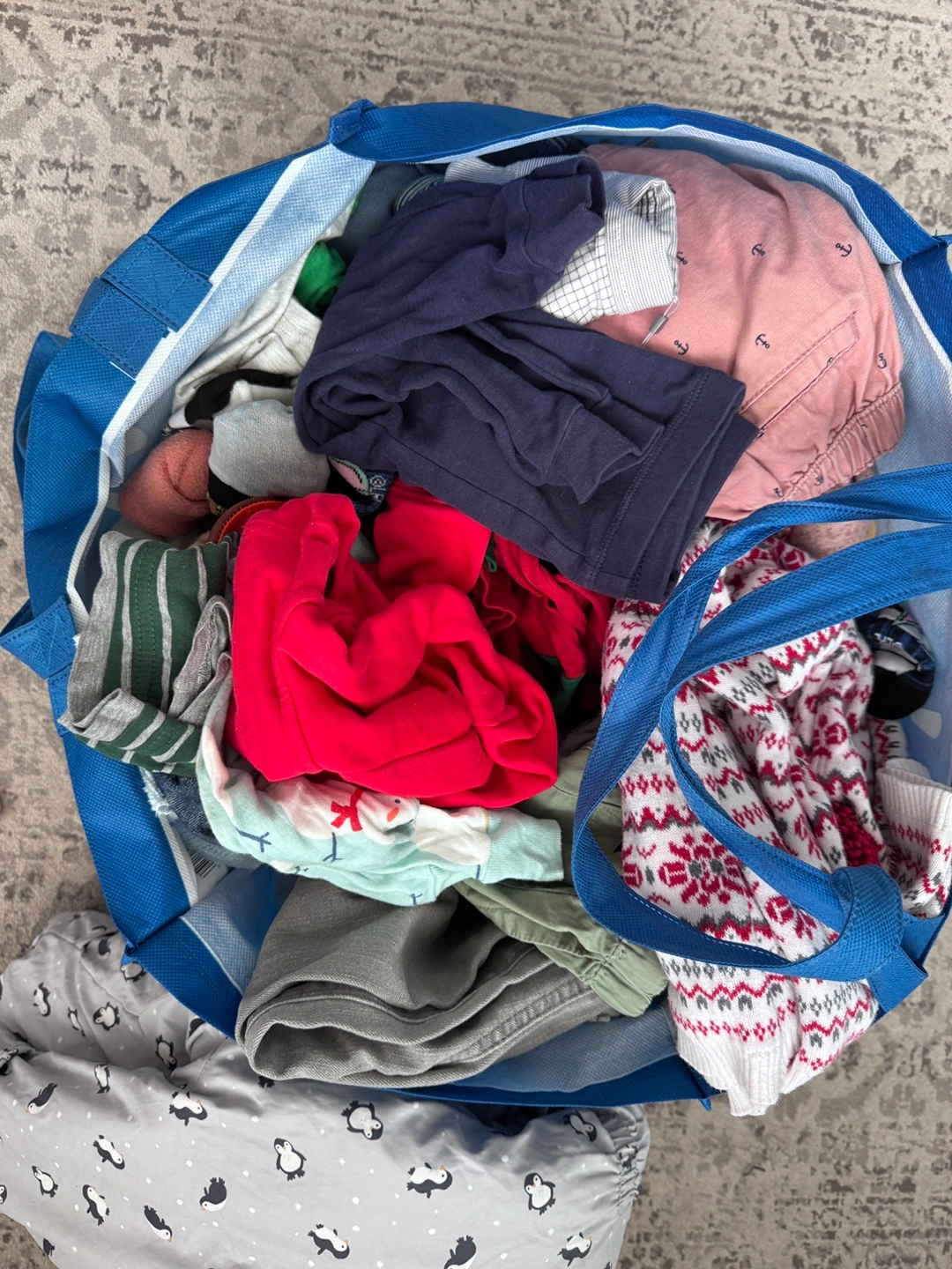 628A large bag of baby boy clothes, 12-18 months old, including jackets, sweatshirts, pants, socks, blankets... Things are new and will be cleaned.