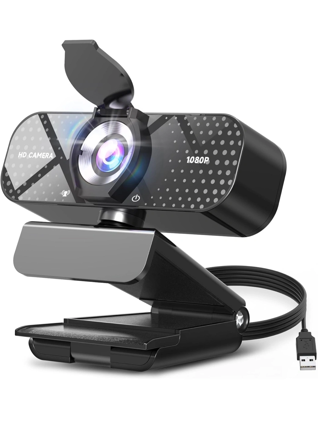 TRAUSI HD Webcam with Microphone, Noise Cancellation, Privacy Cover, Wide-Angle Lens, Auto Light Correction, Plug & Play USB Webcam for Laptop, Desktop, PC, Mac, Zoom, Skype, Streaming (1080P, Black)