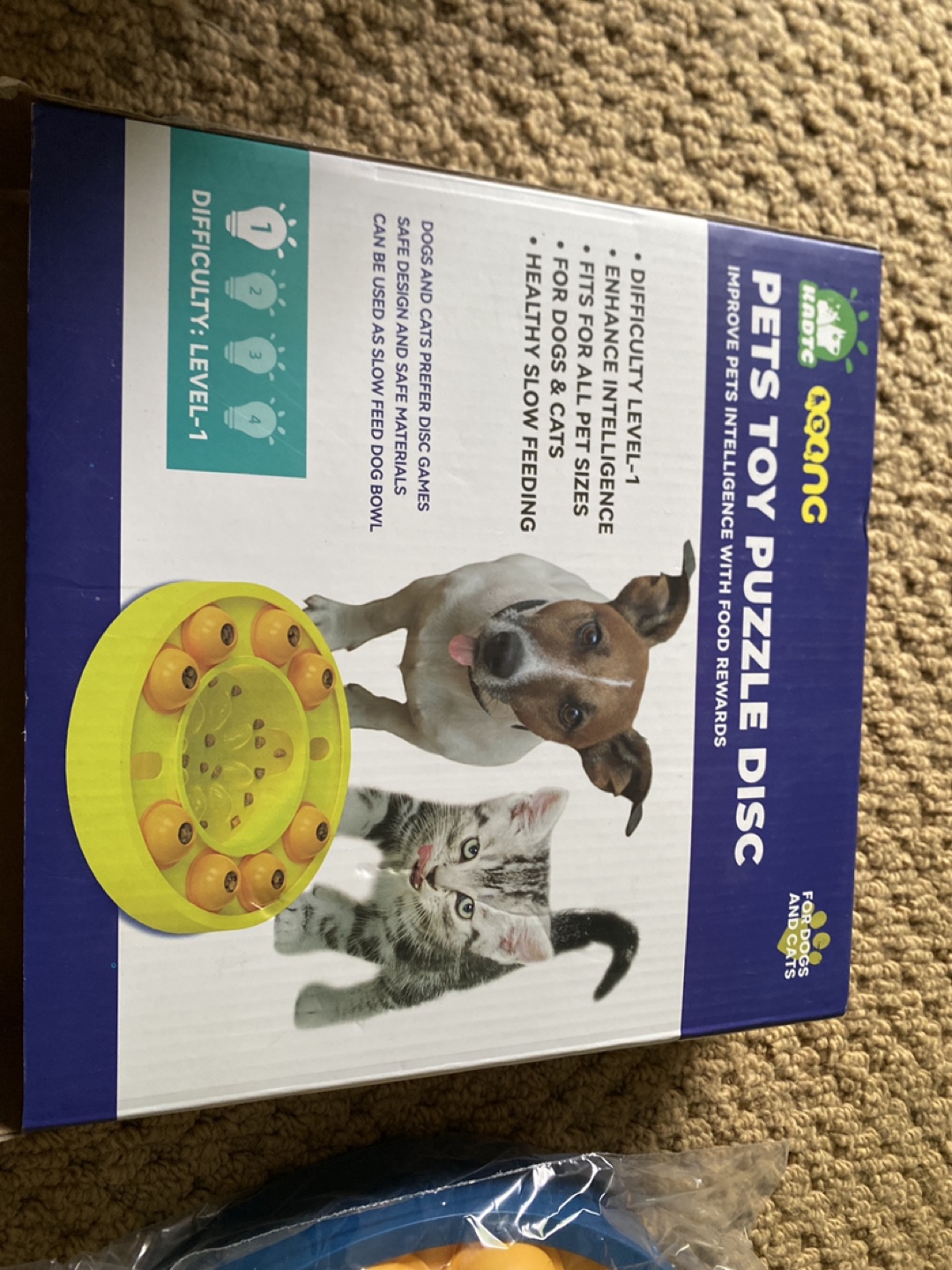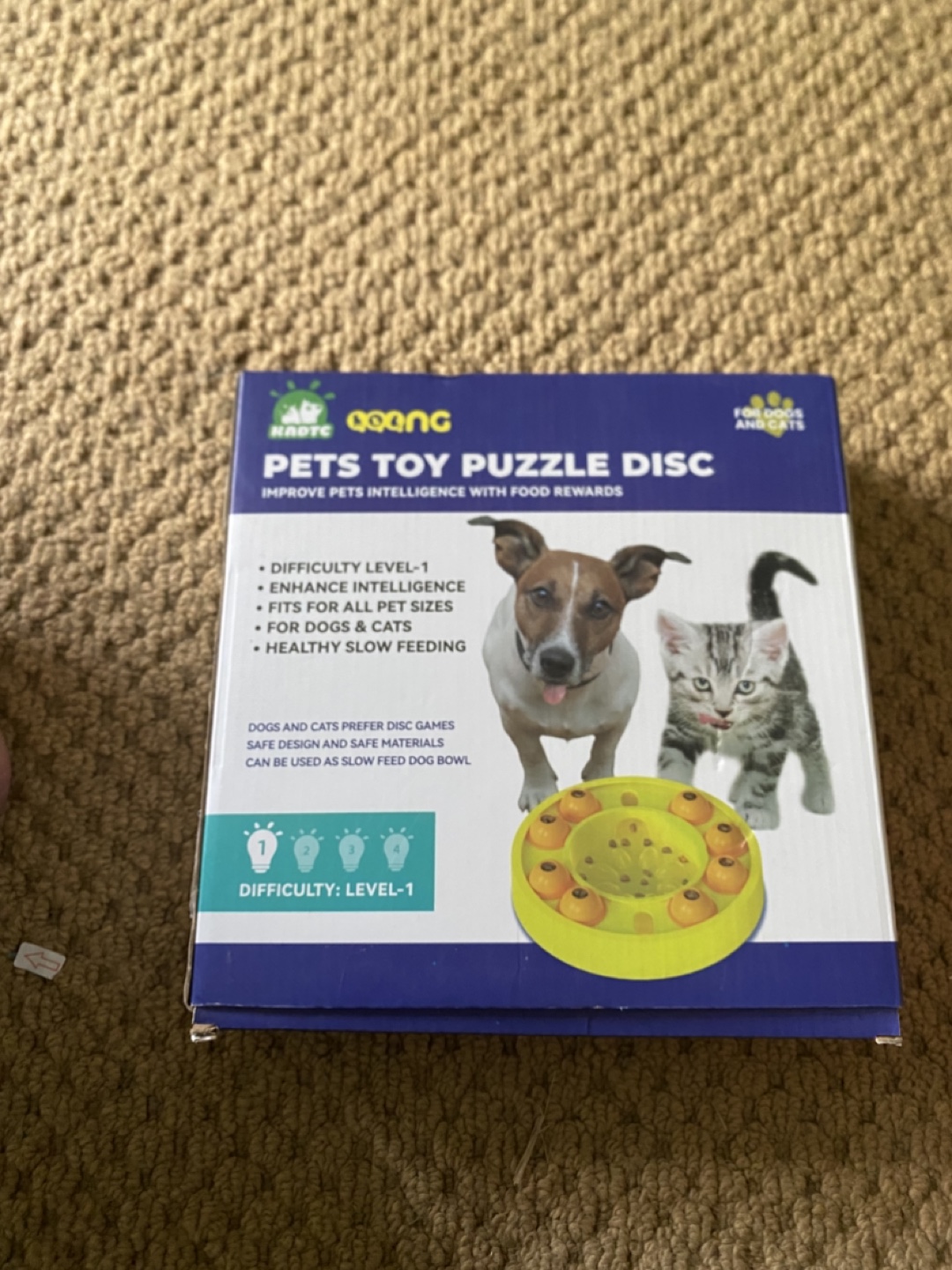 I'm selling a brand new KADTC Goang Pets Toy Puzzle Disc! It's a Level-1 difficulty puzzle disc designed to enhance intelligence in both dogs and cats. It's suitable for all sizes of pets and promotes healthy slow feeding! The box is included.