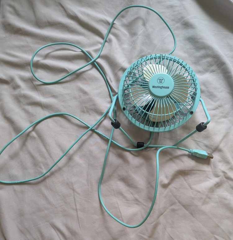 Selling this cute mint-coloured Westinghouse portable USB desk fan. Barely used