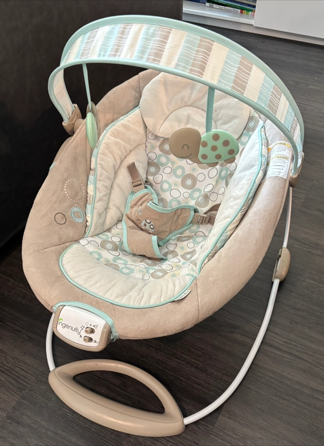 Selling an Ingenuity baby bouncer in great condition! It features a cozy seat with a cute design and a soothing motion to keep your little one content. The bouncer also includes a toy bar with adorable plush toys to entertain your baby. Perfect for newborns and infants!