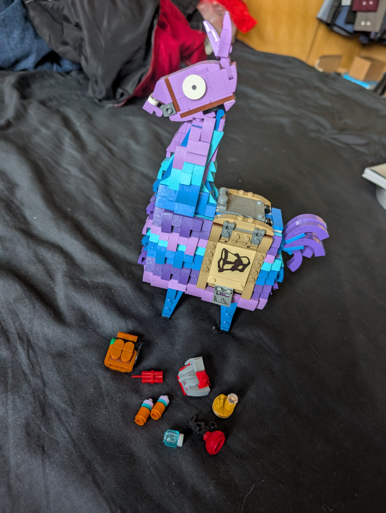 Selling a Lego Fortnite Llama set! It appears to be in good condition and includes various components and accessories. Perfect for any Lego or Fortnite fan! No instructions or box.