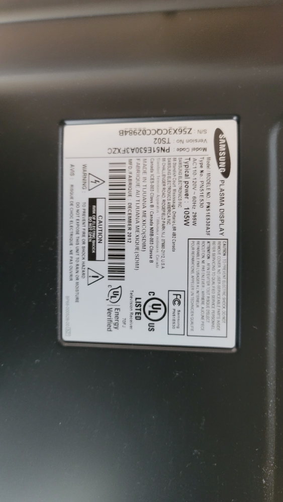 1 / 21 / 2Buy & SellSamsung PN51E530A3F 51" Plasma TVSamsung PN51E530A3F 51" Plasma TV$50Selling a Samsung 51 inch Plasma TV, model number PN51E530A3F. Key details: - Model: PN51E530A3F - Type No: PN51E530 - Power: 110-120V~, 50/60Hz, 295WBrandSamsungWHERE TO MEETthunder groveView MapSELLERverifiedParamAgincourt N1245 reviews1 chats·2 favorites·33 viewsSEND CHAT TO SELLERHi Param! I’m interested in your listing.Hi Param! I’m interested in your listing.Get the Karrot app to chatSign In to chat