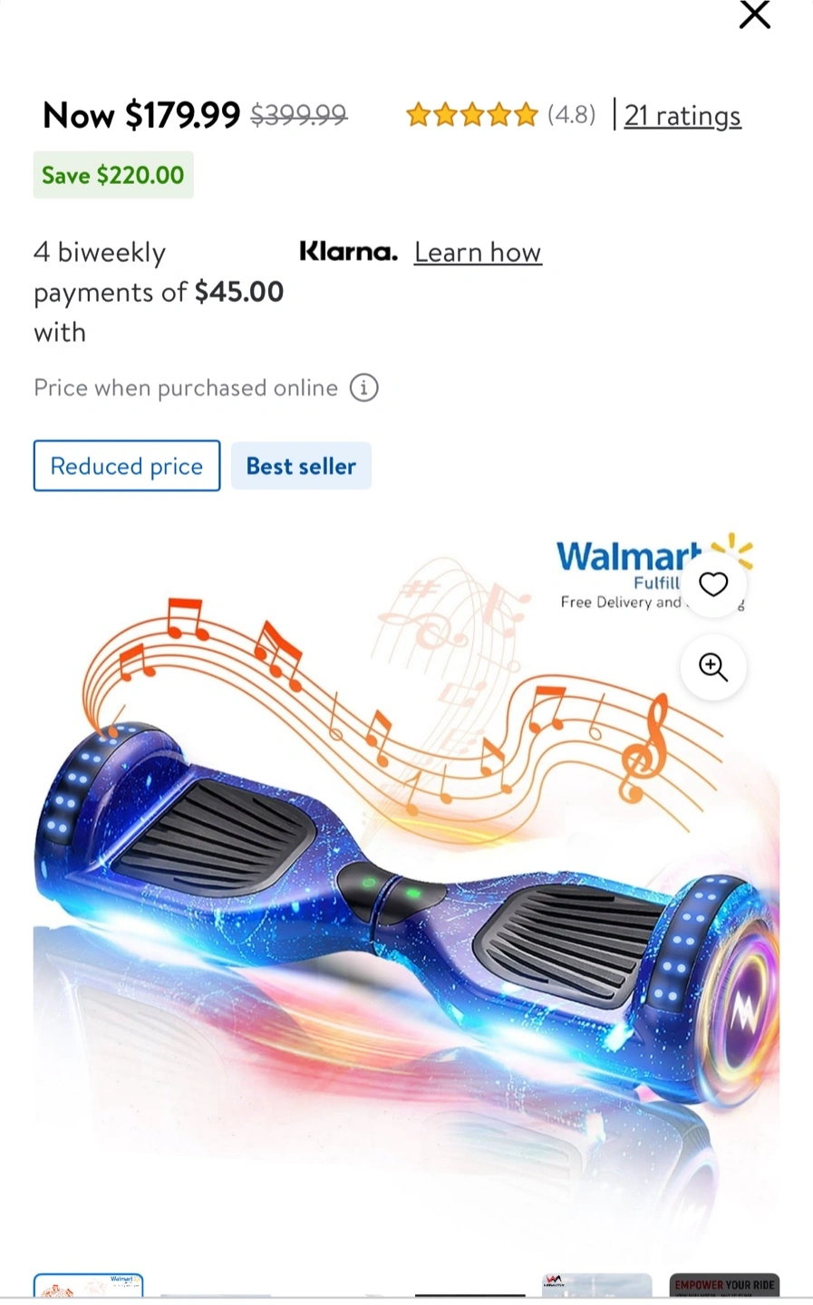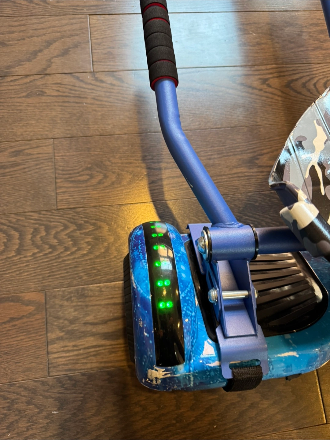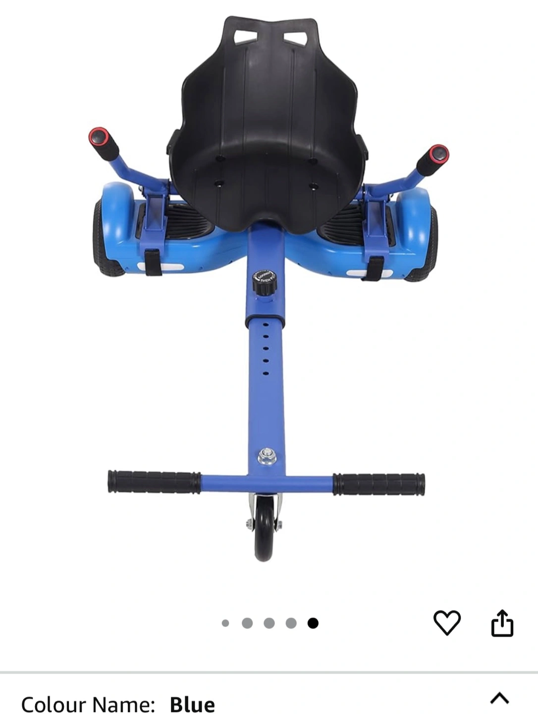 Selling a fun hoverboard with a seat attachment! It's in good condition and ready for a new home. The hoverboard features a cool blue design. Originally, it retailed for $179.99.
