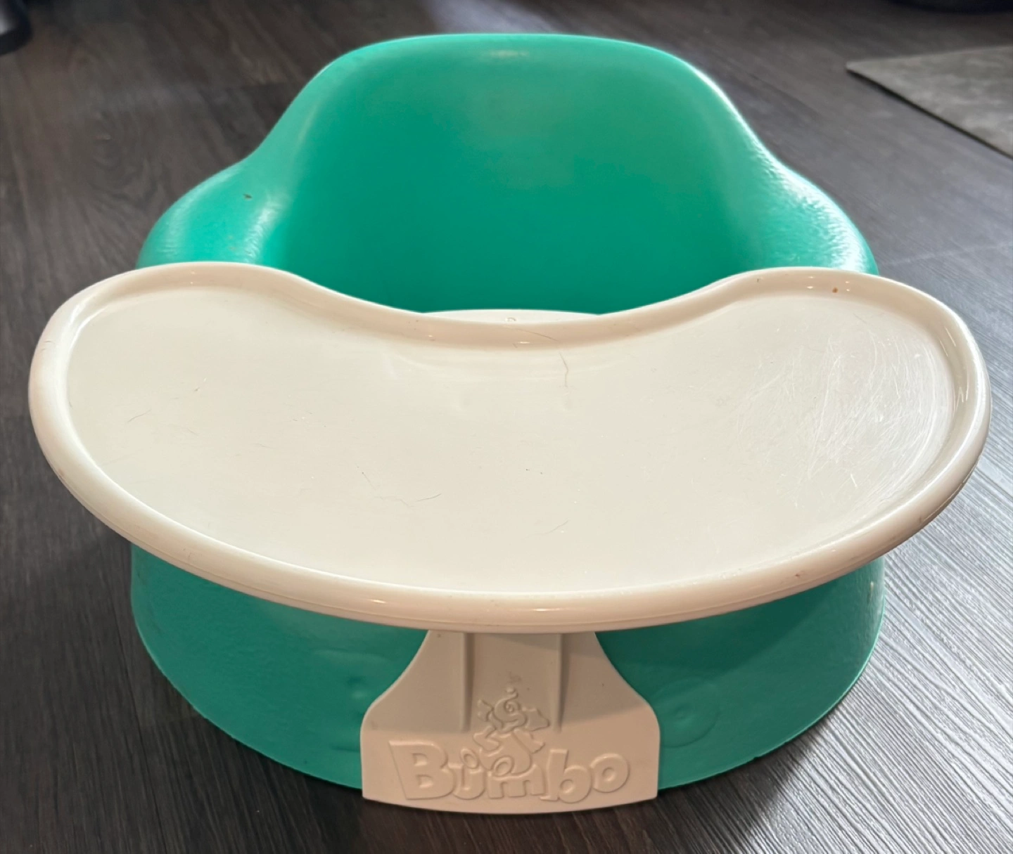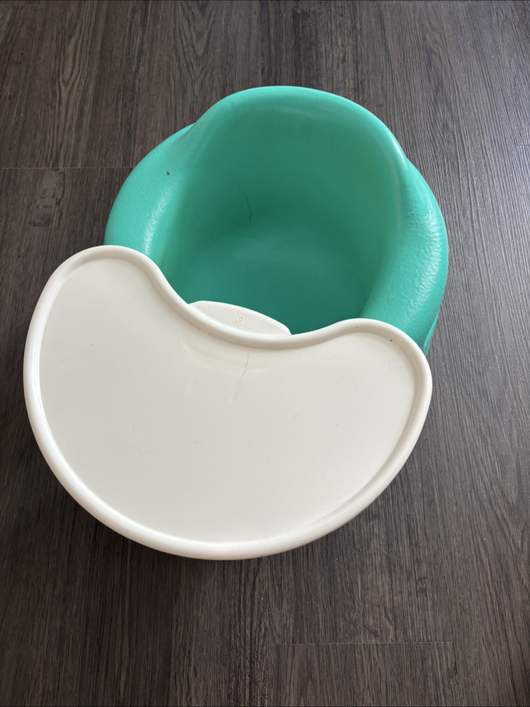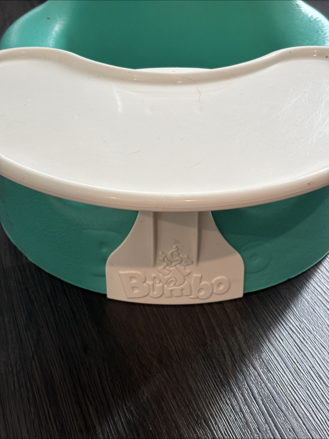 Selling a Bumbo floor seat in aqua with a tray! It's perfect for little ones who are learning to sit up. The seat is in great condition and comes with the detachable tray, making it super convenient for feeding time or playtime.