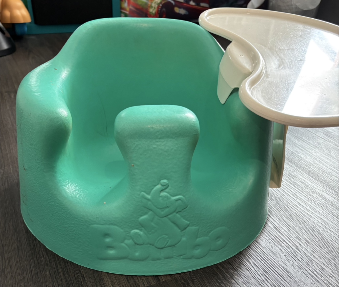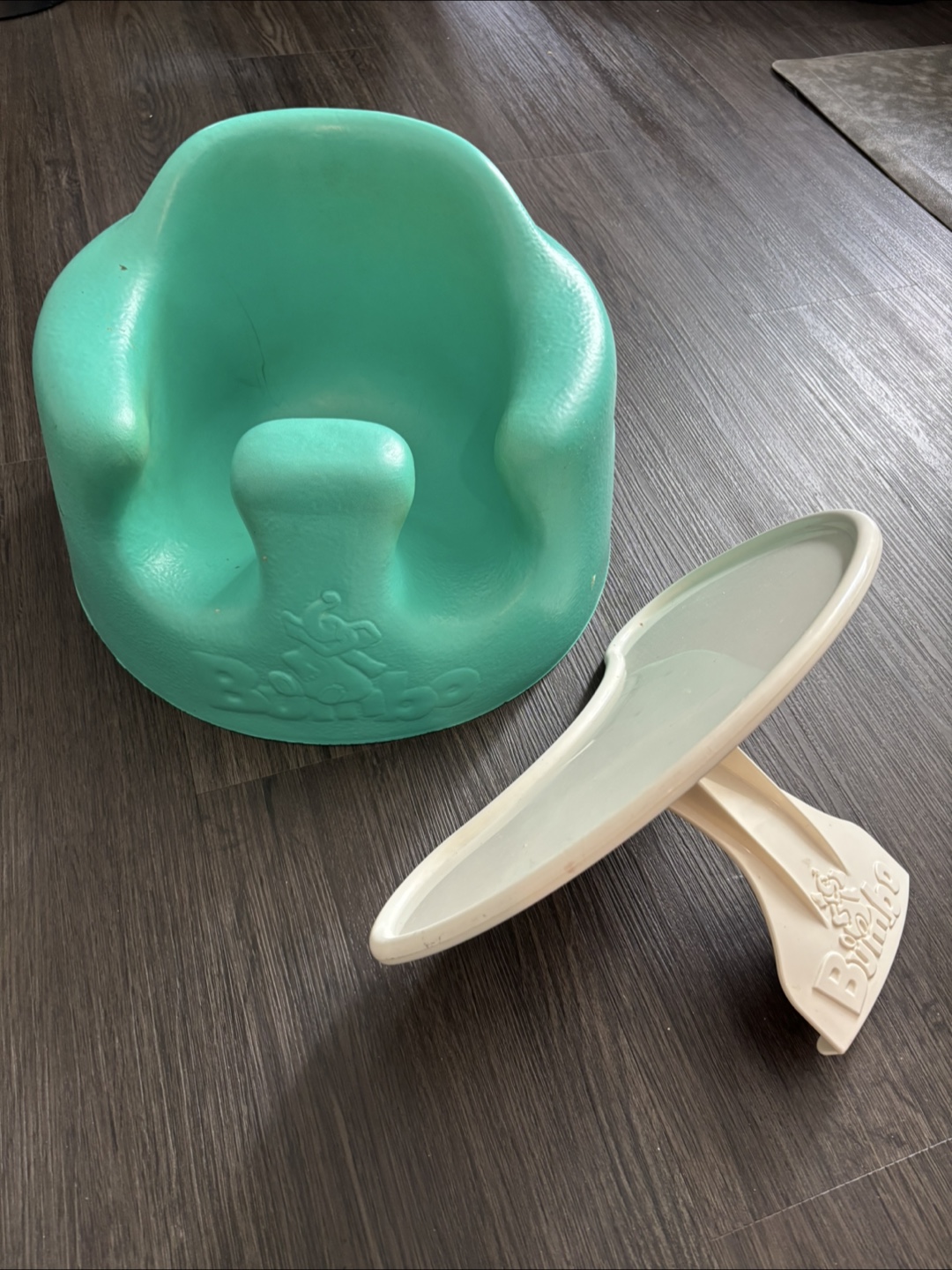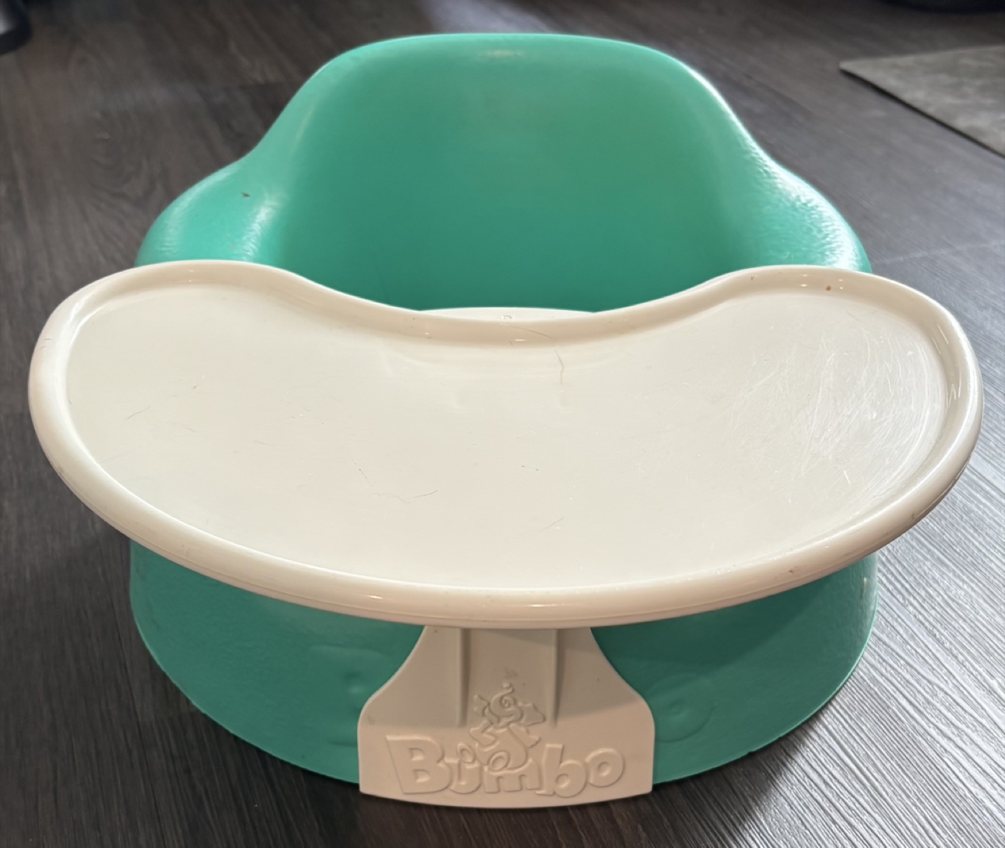 Selling a Bumbo floor seat in aqua with a tray! It's perfect for little ones who are learning to sit up. The seat is in great condition and comes with the detachable tray, making it super convenient for feeding time or playtime.