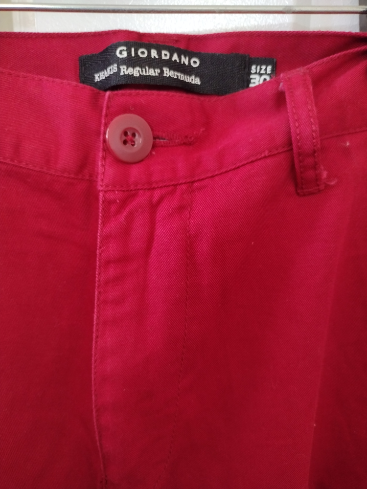 Selling a pair of Giordano Khakis Regular Bermuda shorts in a vibrant red color! These are size 30 and in great condition. Perfect for a casual, stylish look