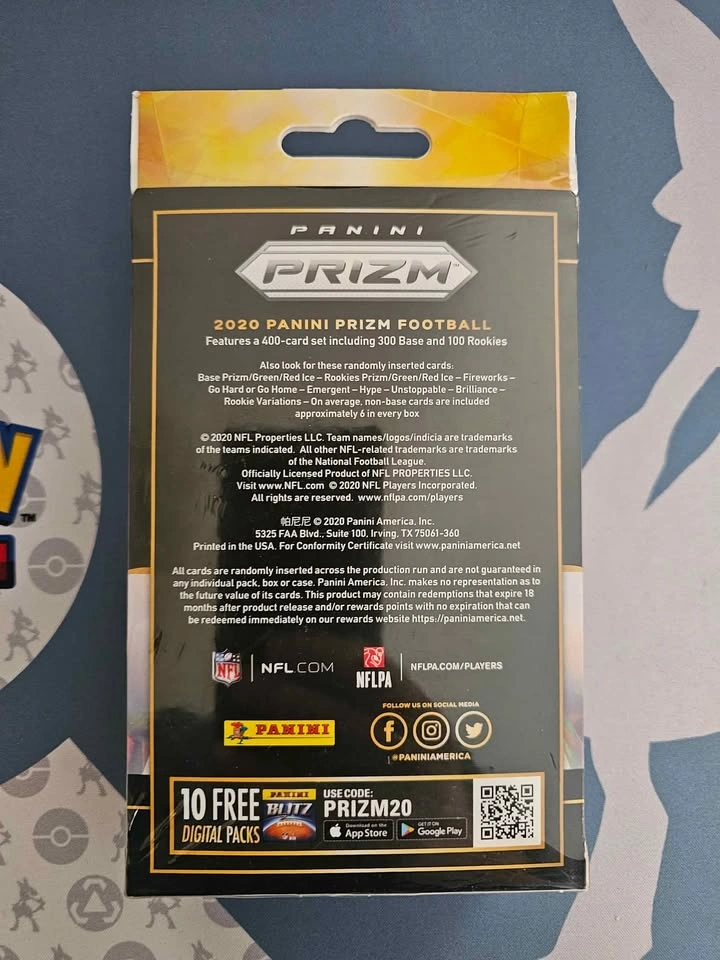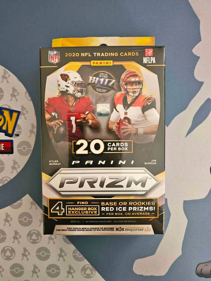 The 2020 Prizm NFL Football Hanger Box features exclusive Red Ice Prizms cards of popular players like Joe Burrow and Justin Herbert. This box includes 20 standard-sized cards made of paperboard, card stock, and paper, showcasing players from teams like the Cincinnati Bengals, Green Bay Packers, and Los Angeles Chargers. It is a must-have for football fans and collectors looking to add rookie and insert cards to their collection from the 2020 season. Manufactured by Panini, this box is a valuable addition to any sports trading card collection.