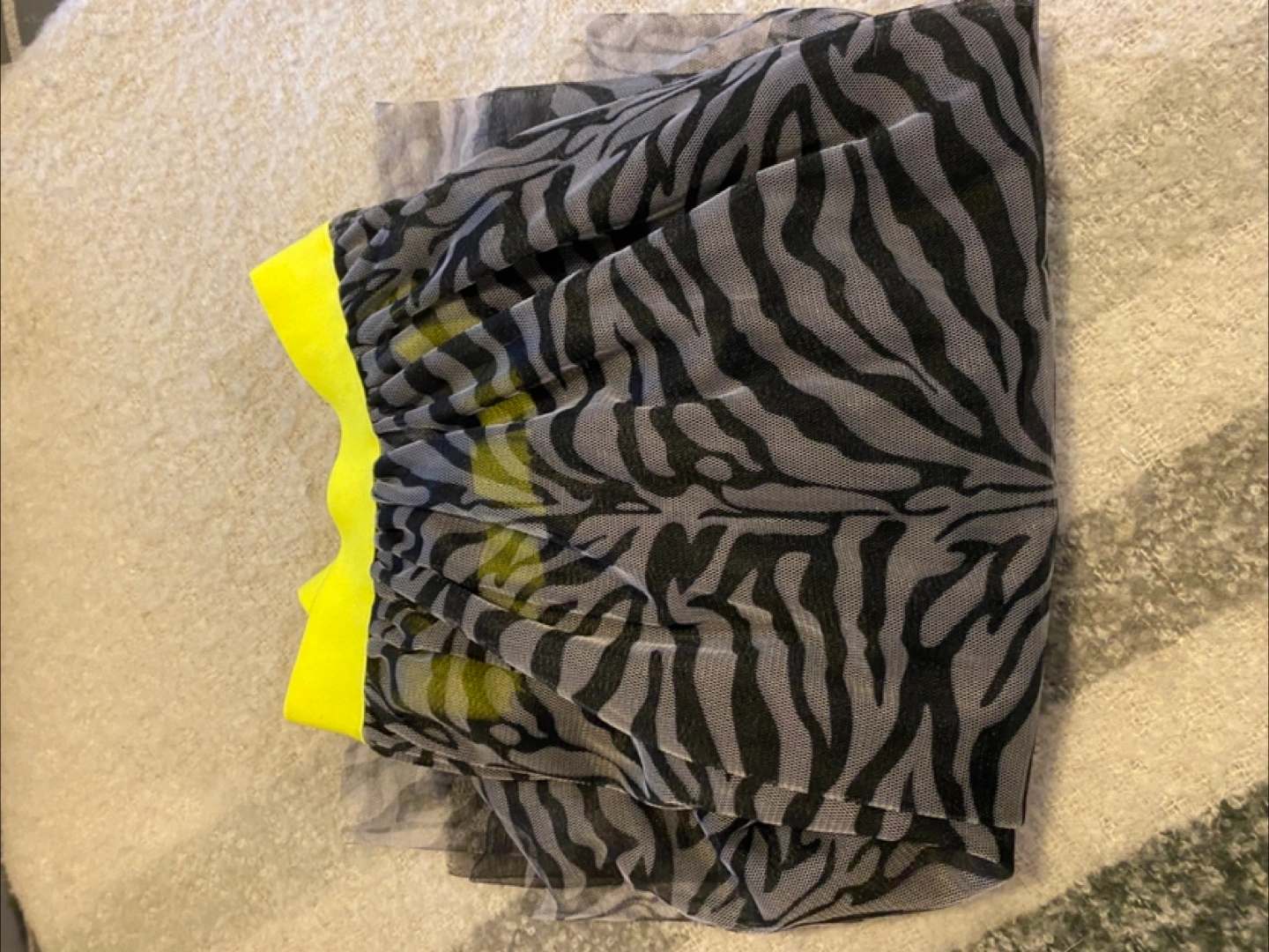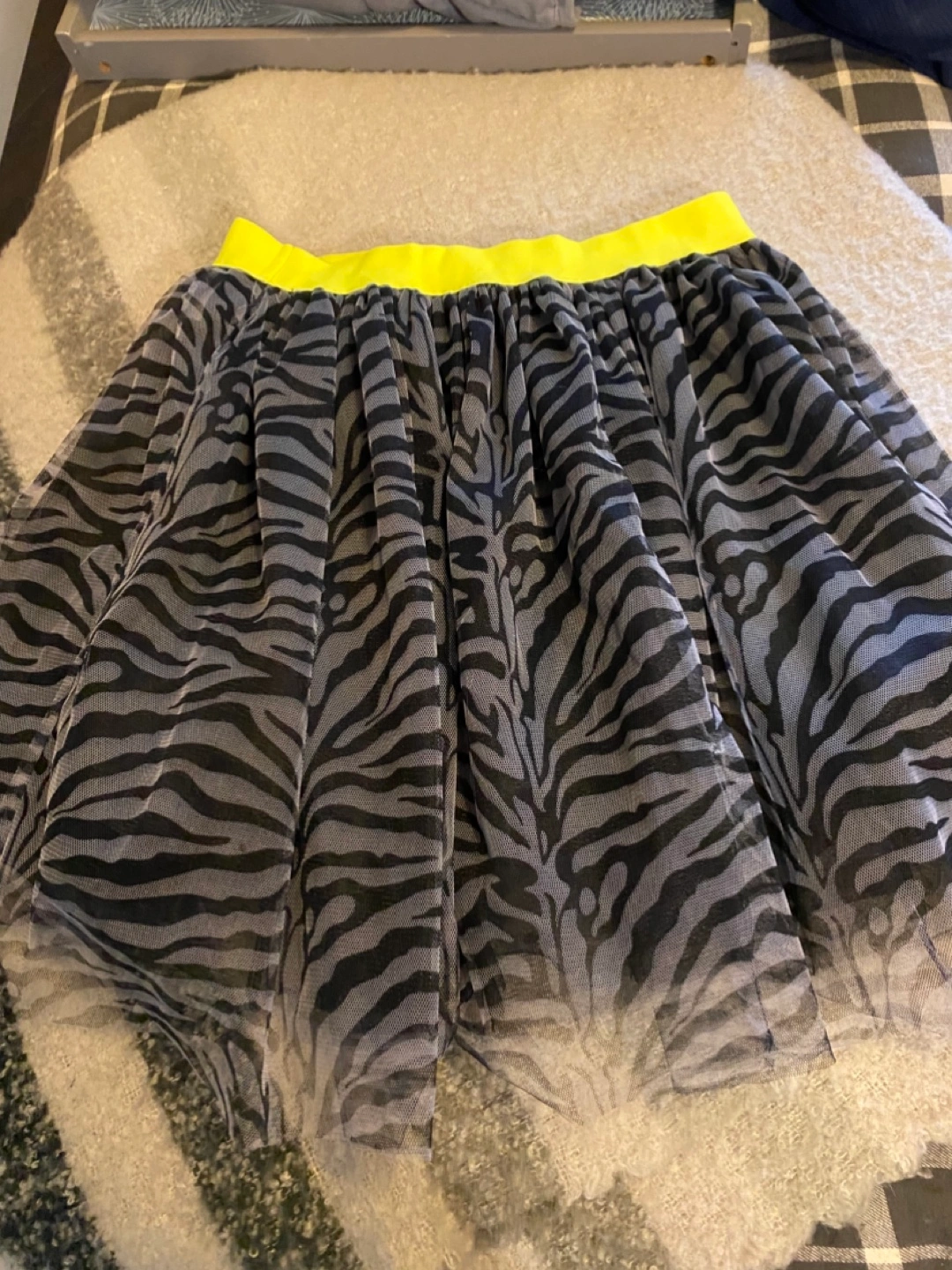 Selling a fun zebra print tulle skirt! It's two layers and has a bright yellow elastic waistband. Perfect for adding a bit of flair to your outfit!