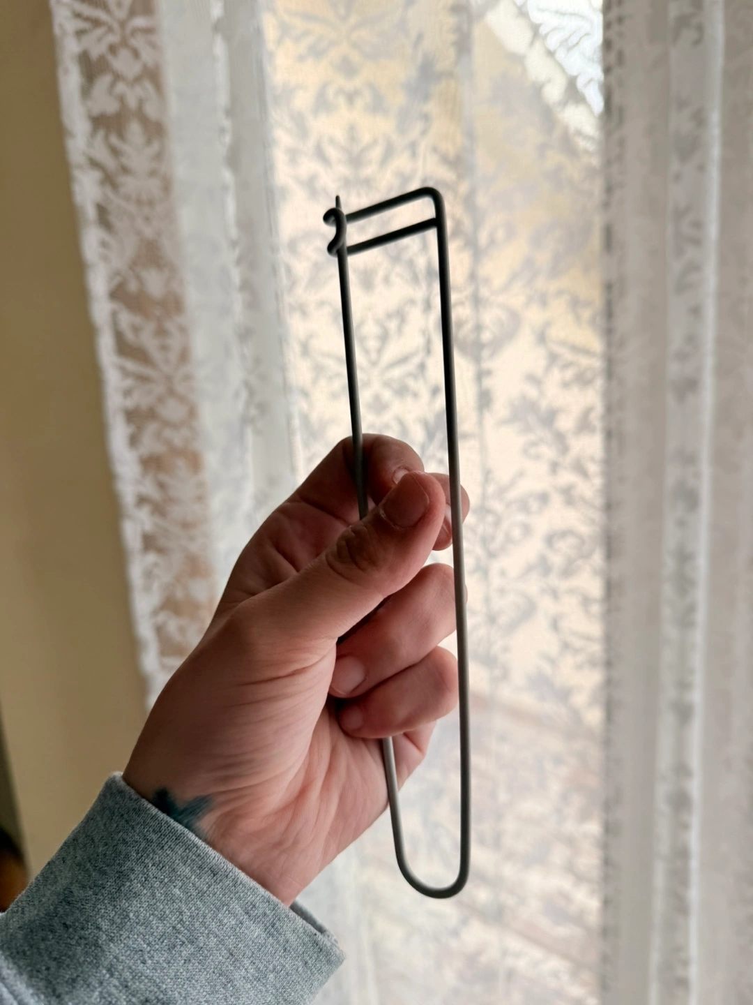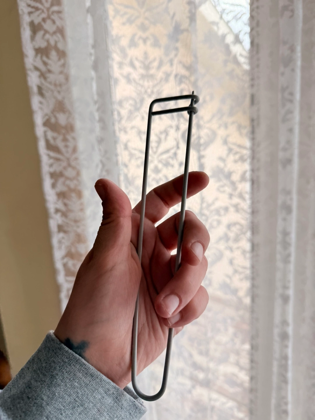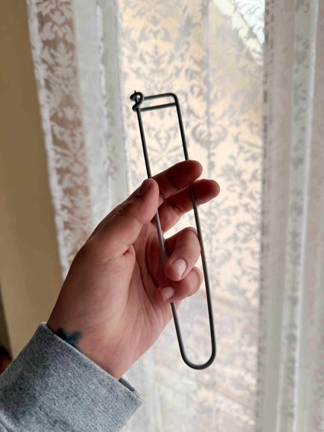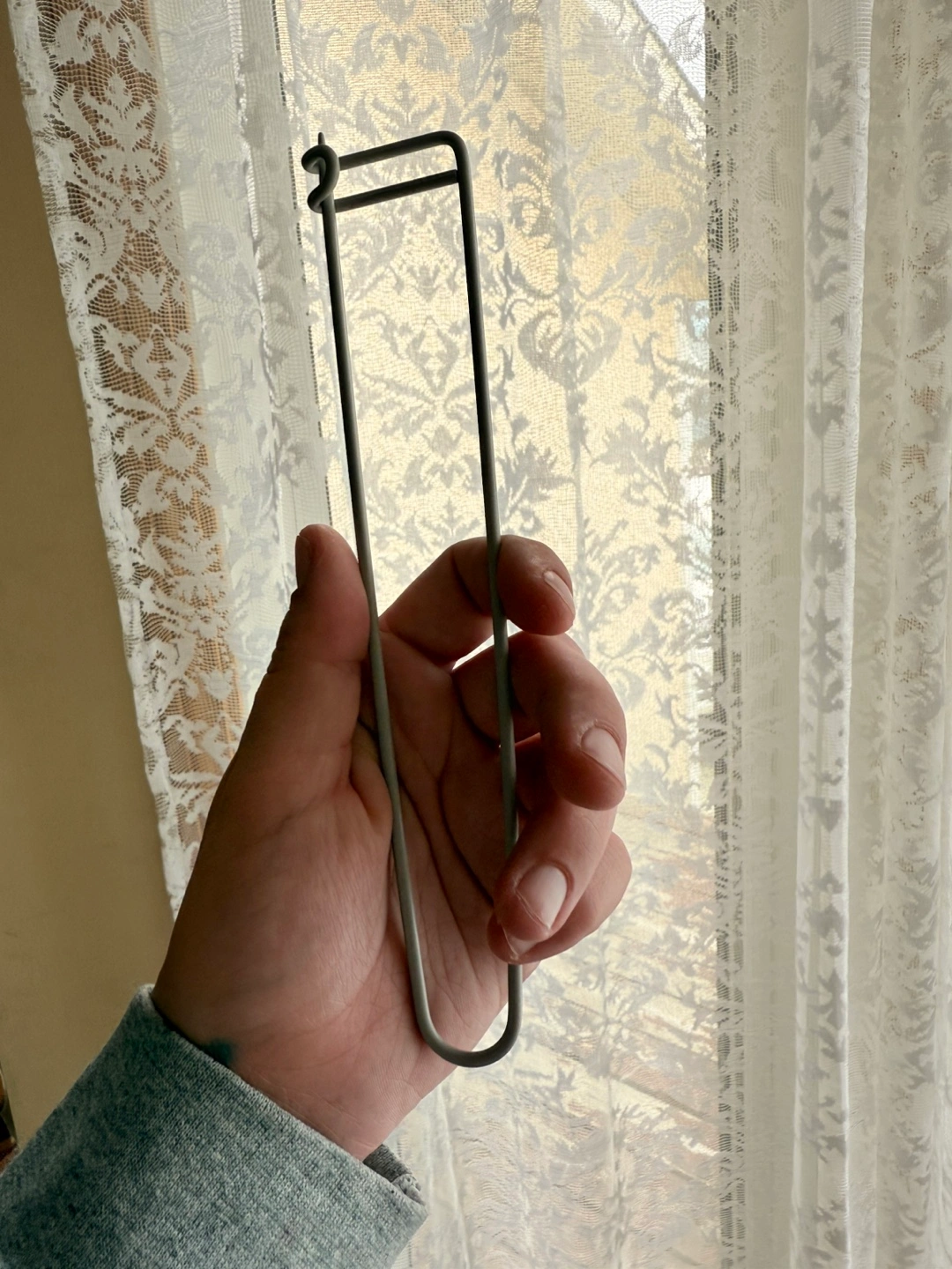 The object in the image is a stitch holder, commonly used in knitting and crocheting. Purpose: Stitch holders are used to temporarily hold live stitches in knitting projects, preventing them from unraveling when they are not actively being worked on. Functionality: They work like a large safety pin, with a latching mechanism to keep the stitches securely on the holder.