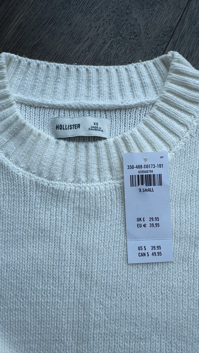 Buy & SellNew Hollister White Knit Sweater XSNew Hollister White Knit Sweater XS$29Selling a brand new Hollister white knit sweater in size XS. It's in perfect condition with tags still attached!ConditionNewSizeXSBrandHollisterWHERE TO MEET30 Samuel Wood WyView MapSELLERverifiedElenaKipling Station1398 reviews0 chats·0 favorites·15 viewsSEND CHAT TO SELLERHi Elena! I’m interested in your listing.Hi Elena! I’m interested in your listing.Get the Karrot app to chatSign In to chat