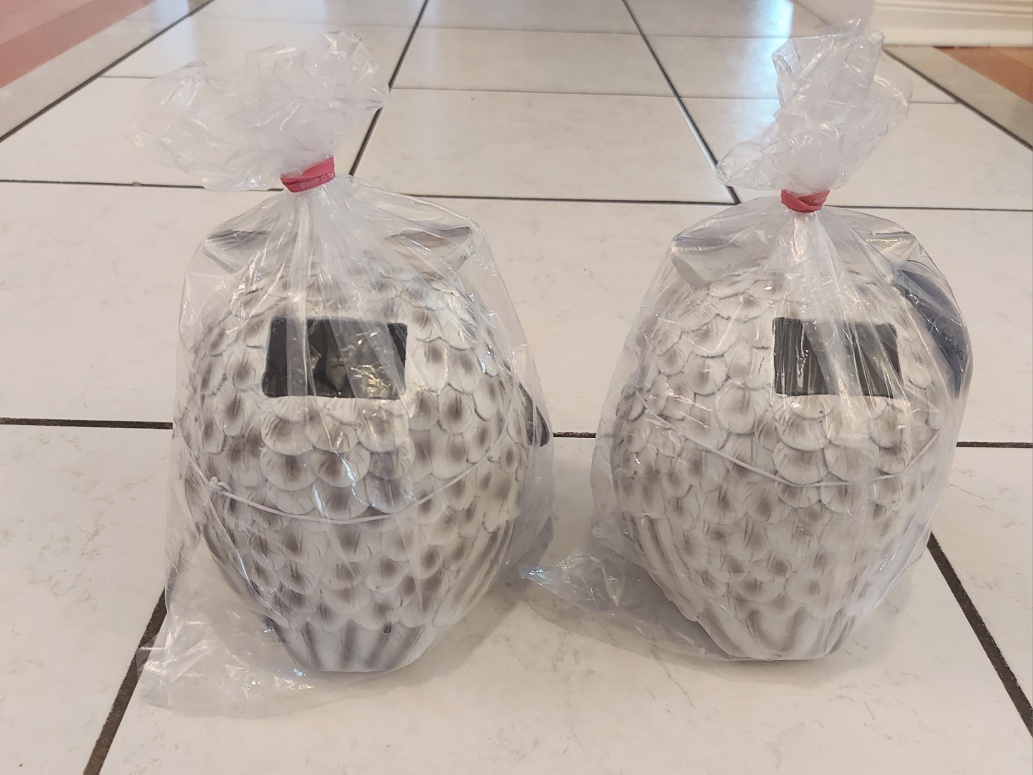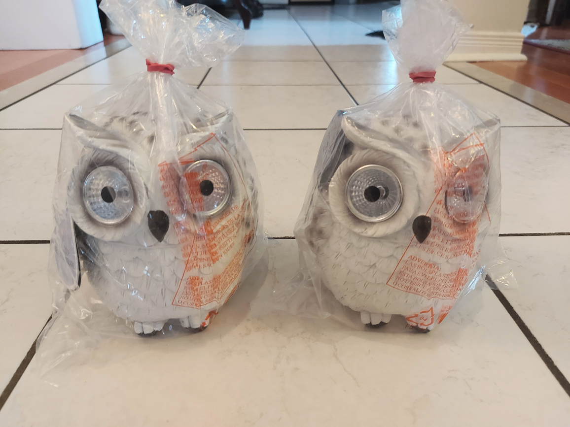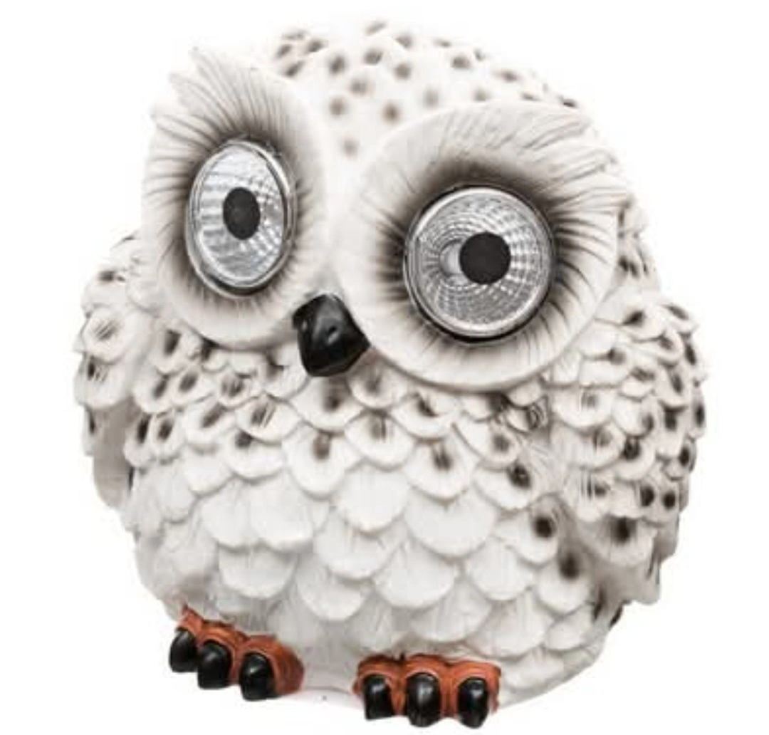 The owl light charges using solar power during the day and automatically turns on at night, providing a warm glow.