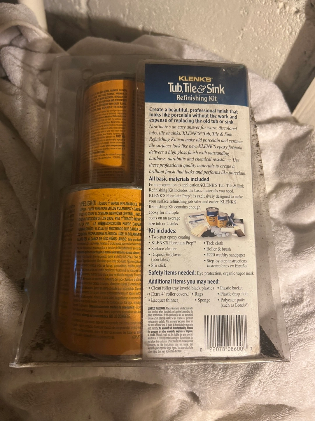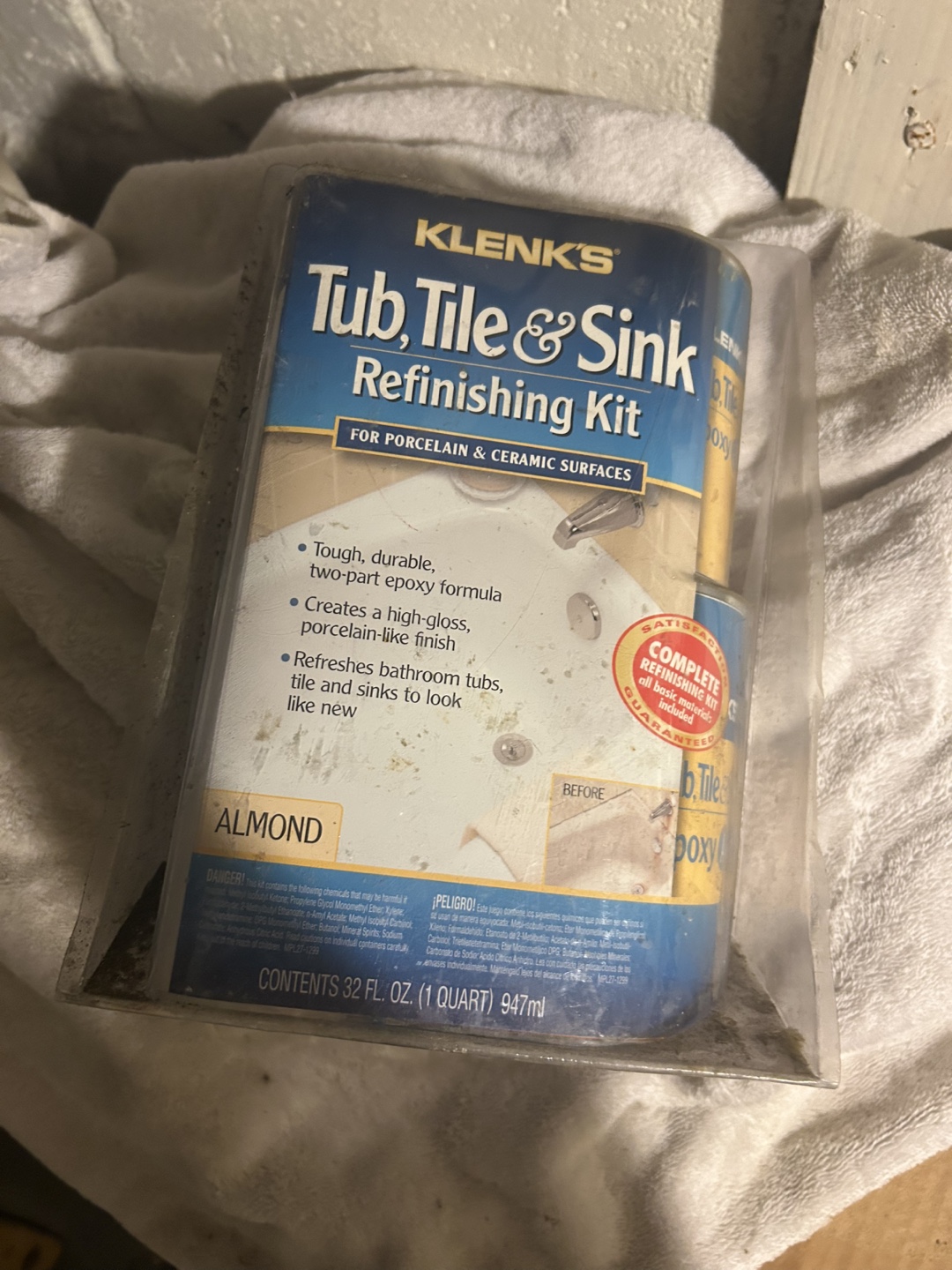 I have a Klenk's Tub, Tile & Sink Refinishing Kit for sale. It's designed for porcelain and ceramic surfaces.
