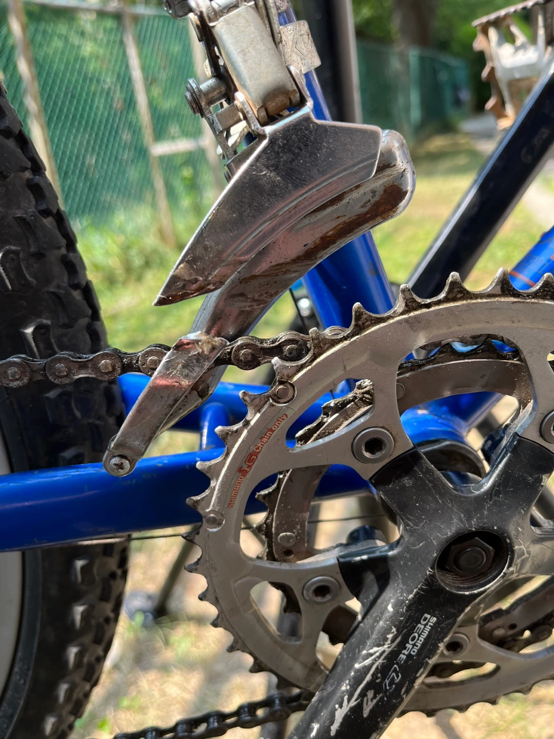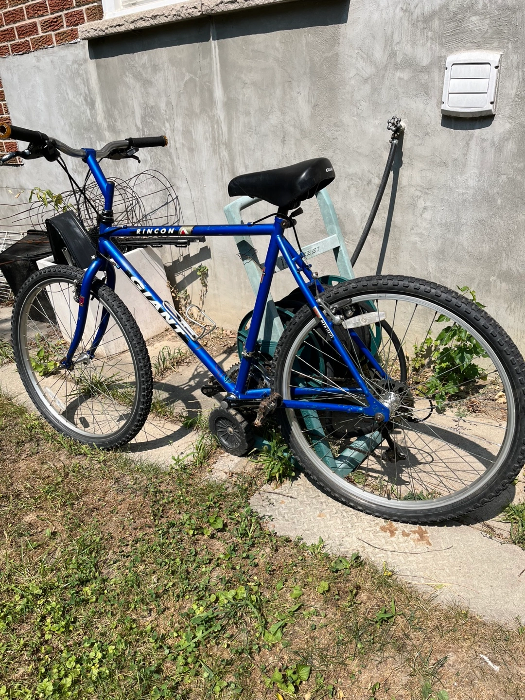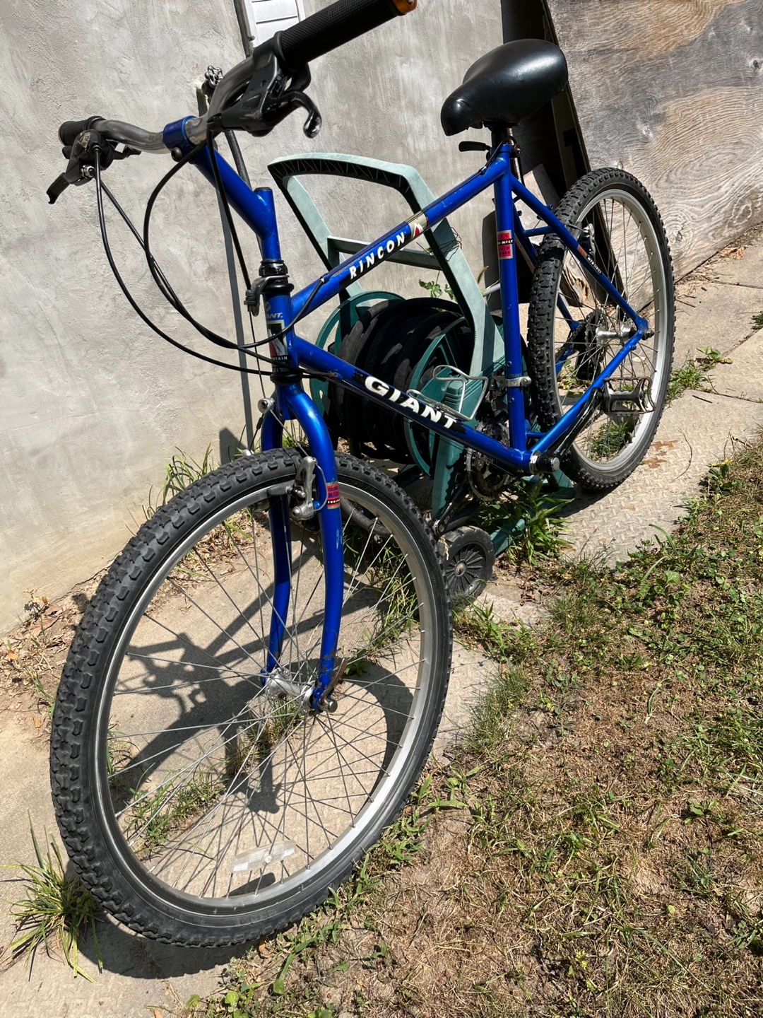Selling a blue Giant Rincon mountain bike. The front derailleurs broke (see photo)but still rideable smoothly with rear 7 speeds. Tires are good, It's good quality bike and ready for a new home! Perfect for trails or just getting around town.