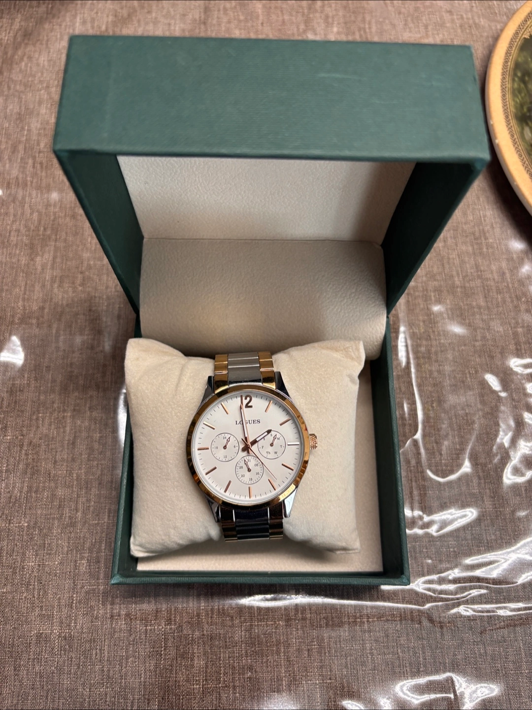 Selling a Logues watch in excellent condition! It features a sleek two-tone stainless steel design. Comes with the original box and an extra link for adjusting the fit. A stylish accessory for any occasion