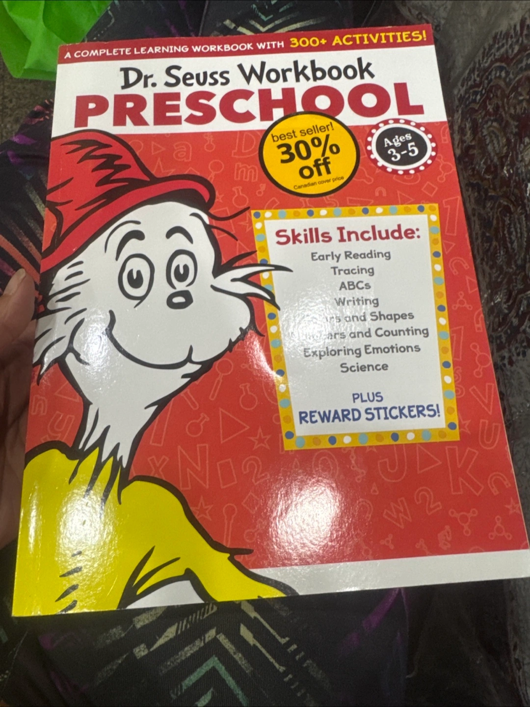 Dr. Seuss Workbook for preschool aged kids! It's a complete learning workbook with over 300 activities. Skills include early reading, tracing, ABCs, writing, numbers and shapes, exploring emotions, and science. Plus, it comes with reward stickers! New book just a few pages have scribbling Pick up NE Marlborough See my other ads