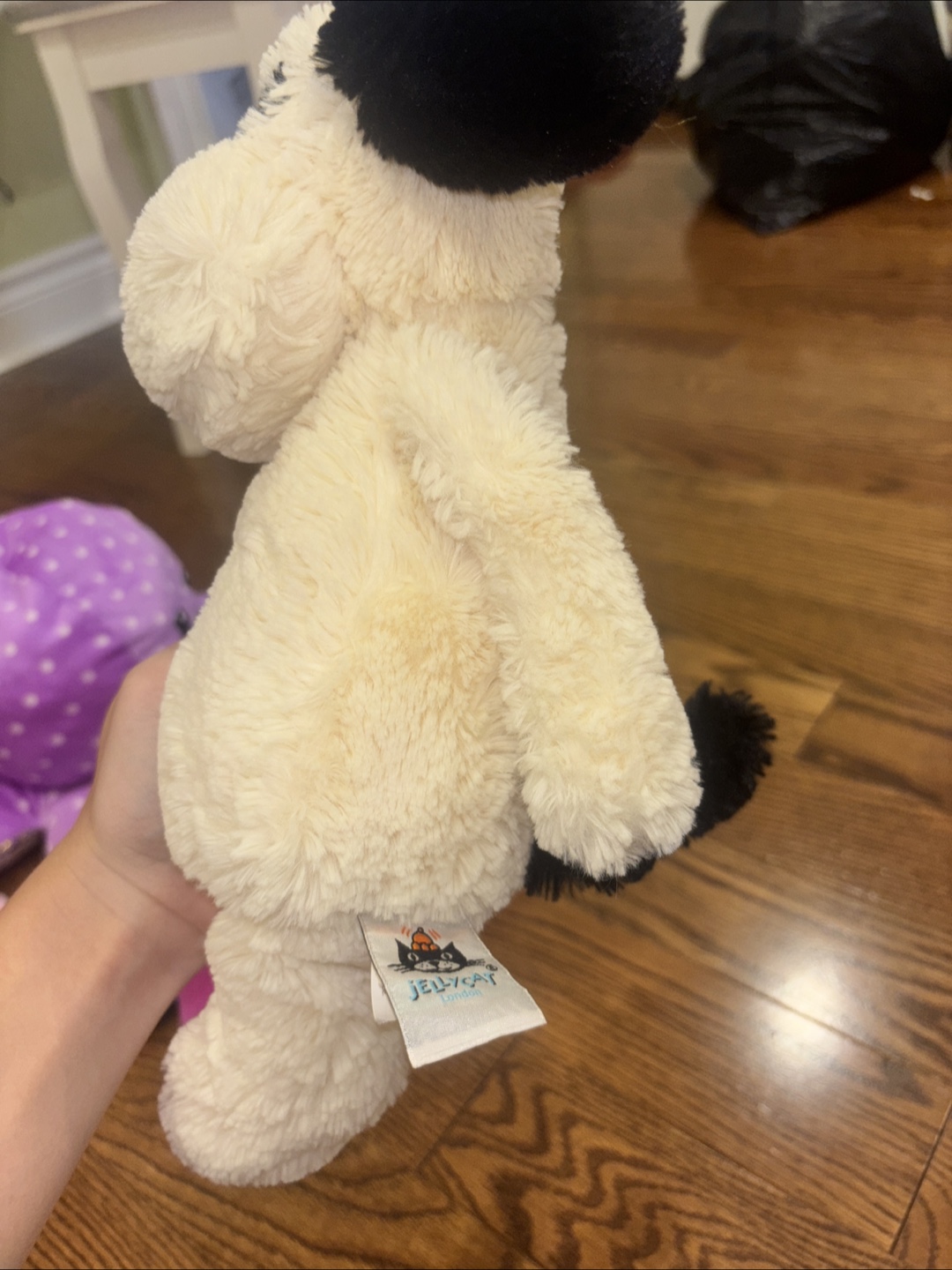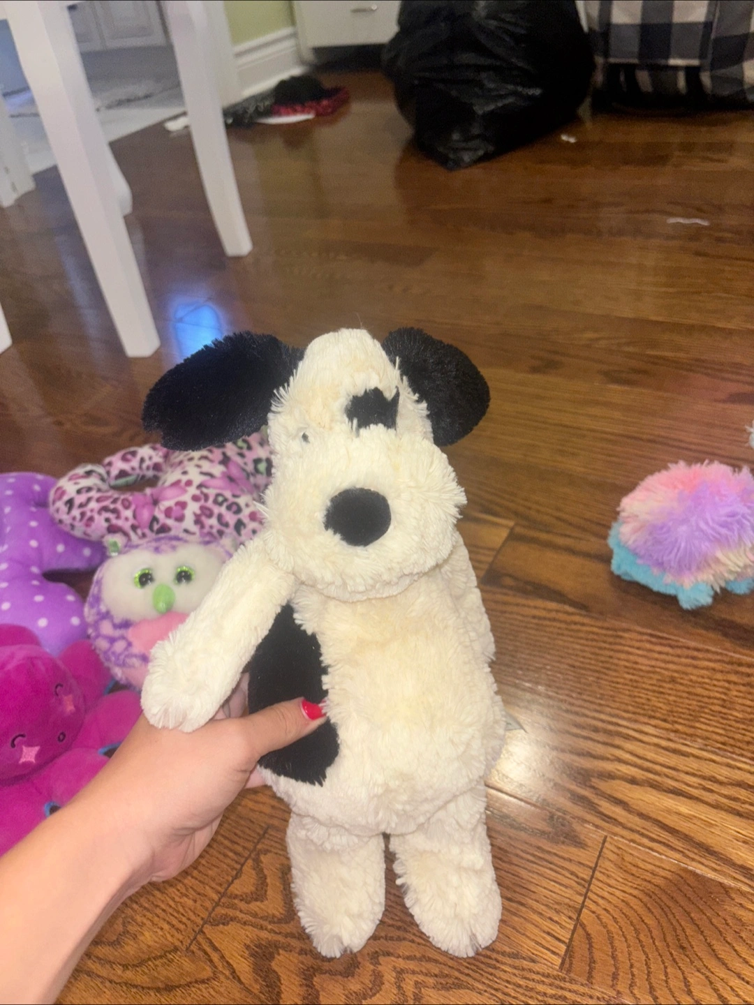 This is a super cute Jellycat Bashful puppy plush! It features a black and cream colour, and is in great condition. The perfect cuddly companion for anyone!