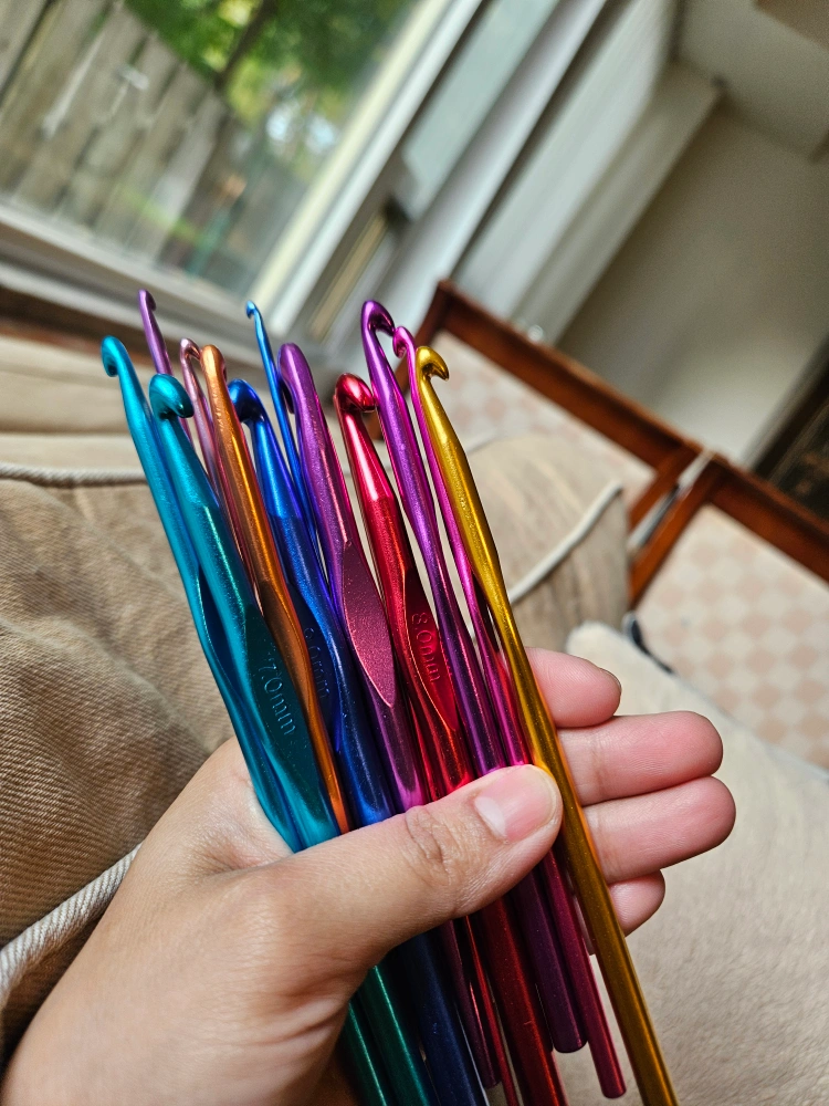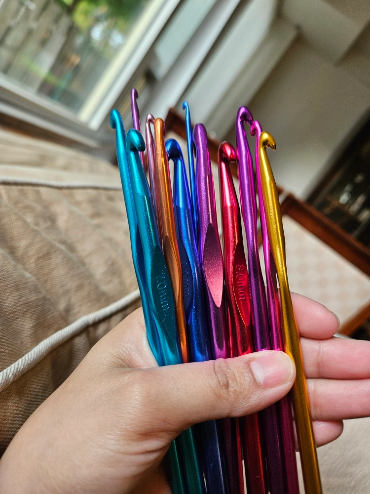 207Selling a set of colourful crochet hooks! They come in various sizes, including 2.5mm, 6.0mm, 7.0mm, and 8.0mm. Perfect for all your crafting needs