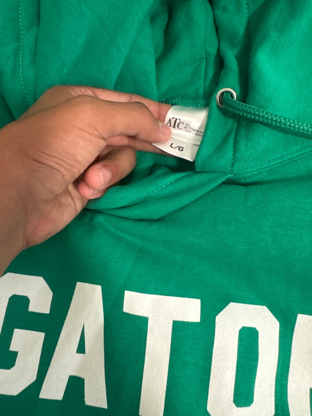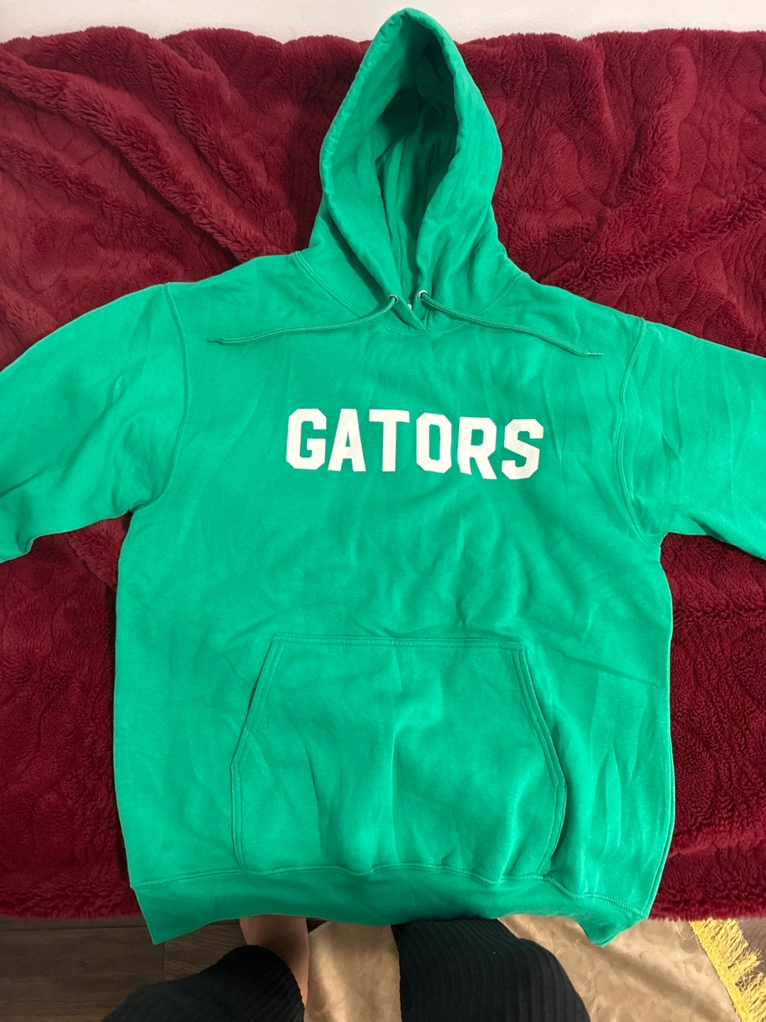 Selling a bright green Gators hoodie! It's in great condition and perfect for showing off your team spirit. The size is L/G (Large/Grande). it’s too big for me so that’s why I’m selling it and it’s ultra comfortable, especially for the winter.
