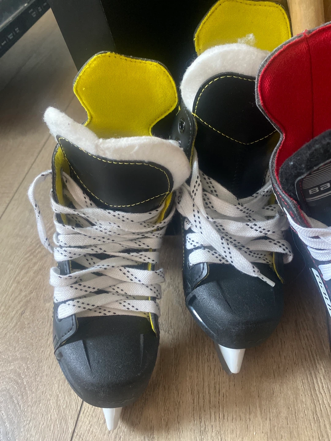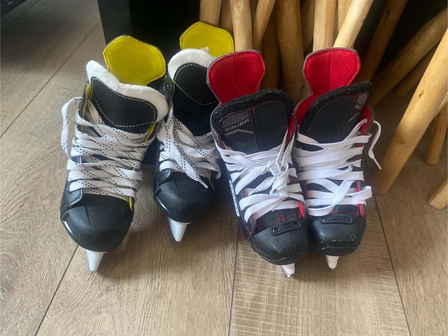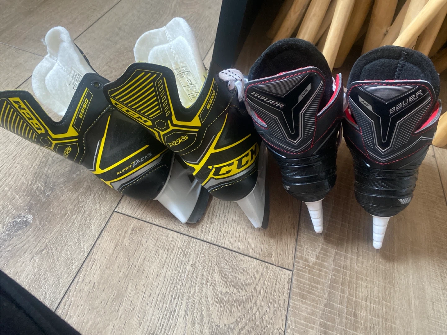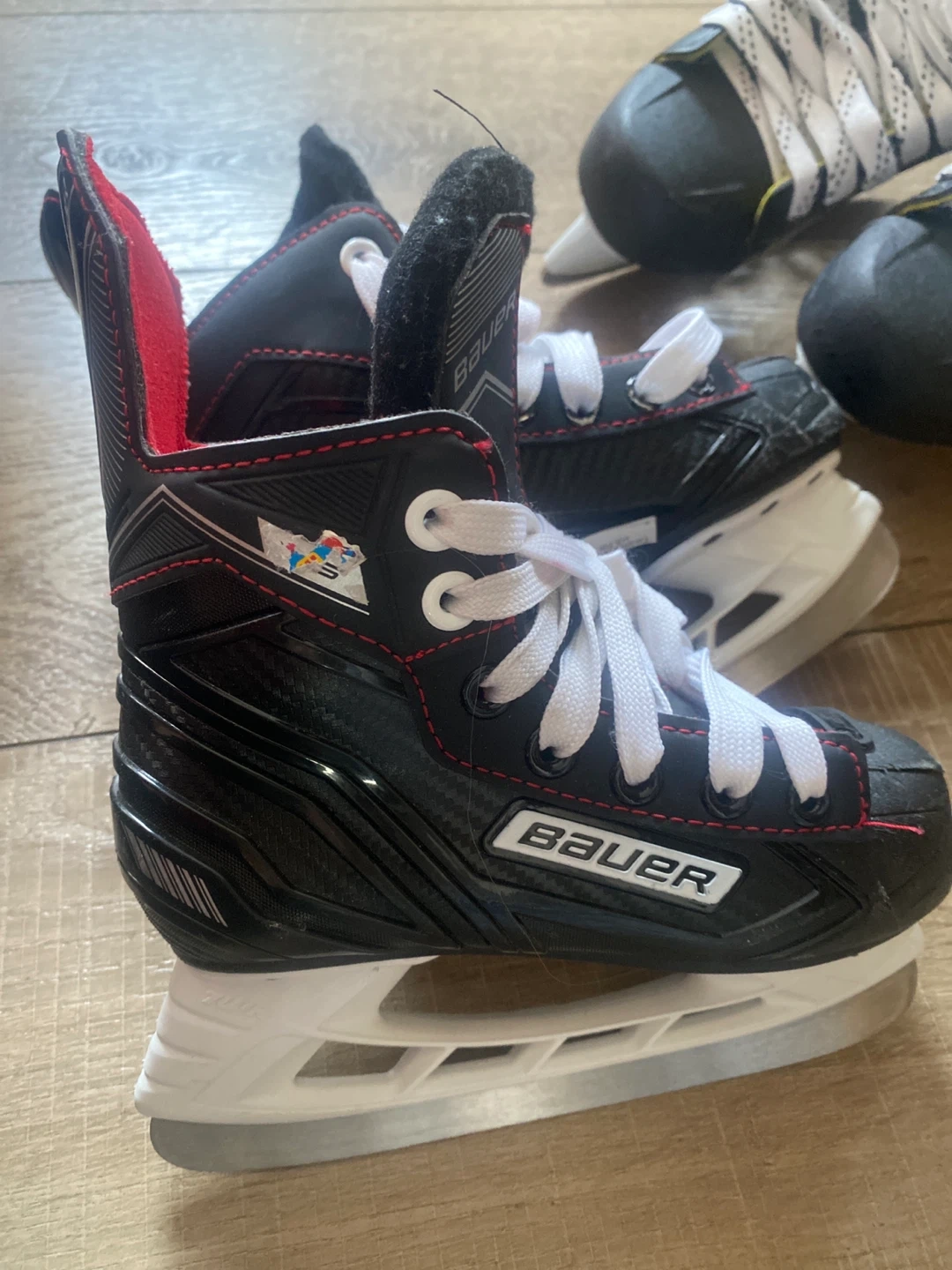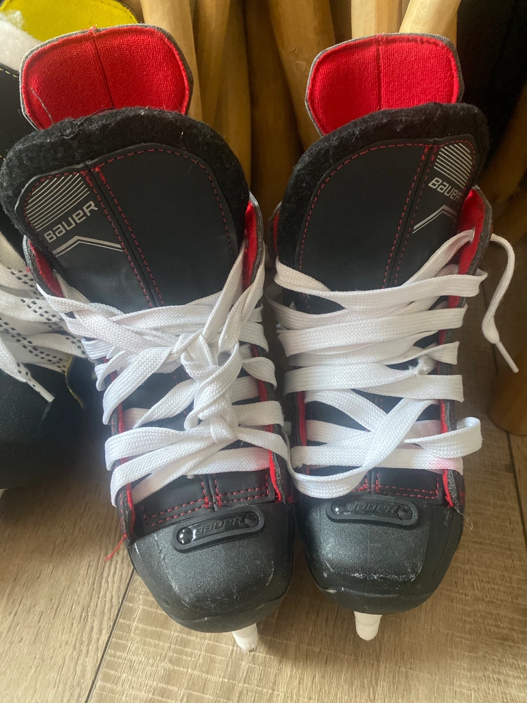 Selling a pair of Bauer youth hockey skates both skates are different sizes . They're in good condition and ready for the rink! Perfect for young players starting out or needing a new pair. Only used for six weeks two days a week. Originally got both of them around 80 to 90 bucks. Im selling one for 50 not both of them together