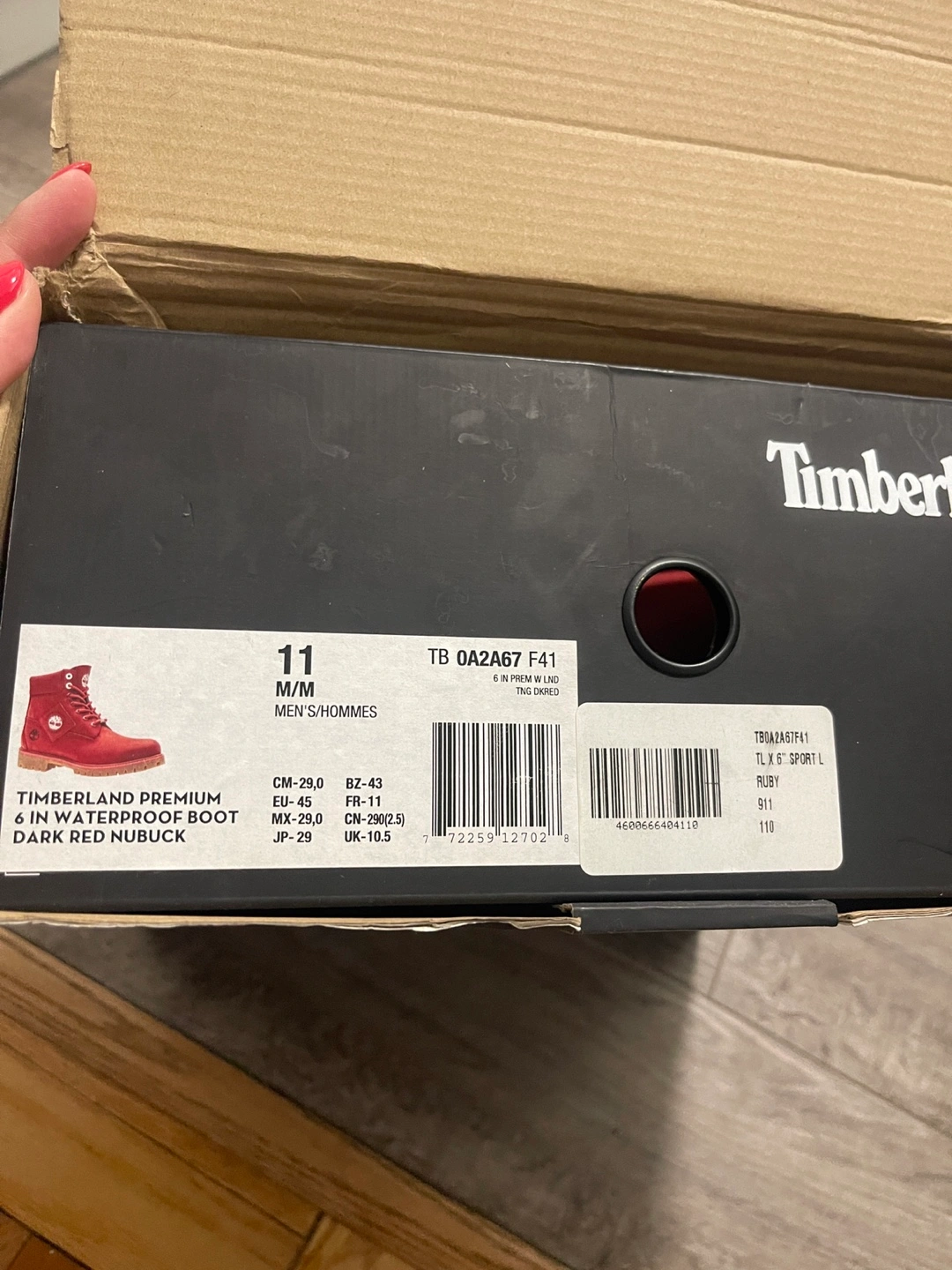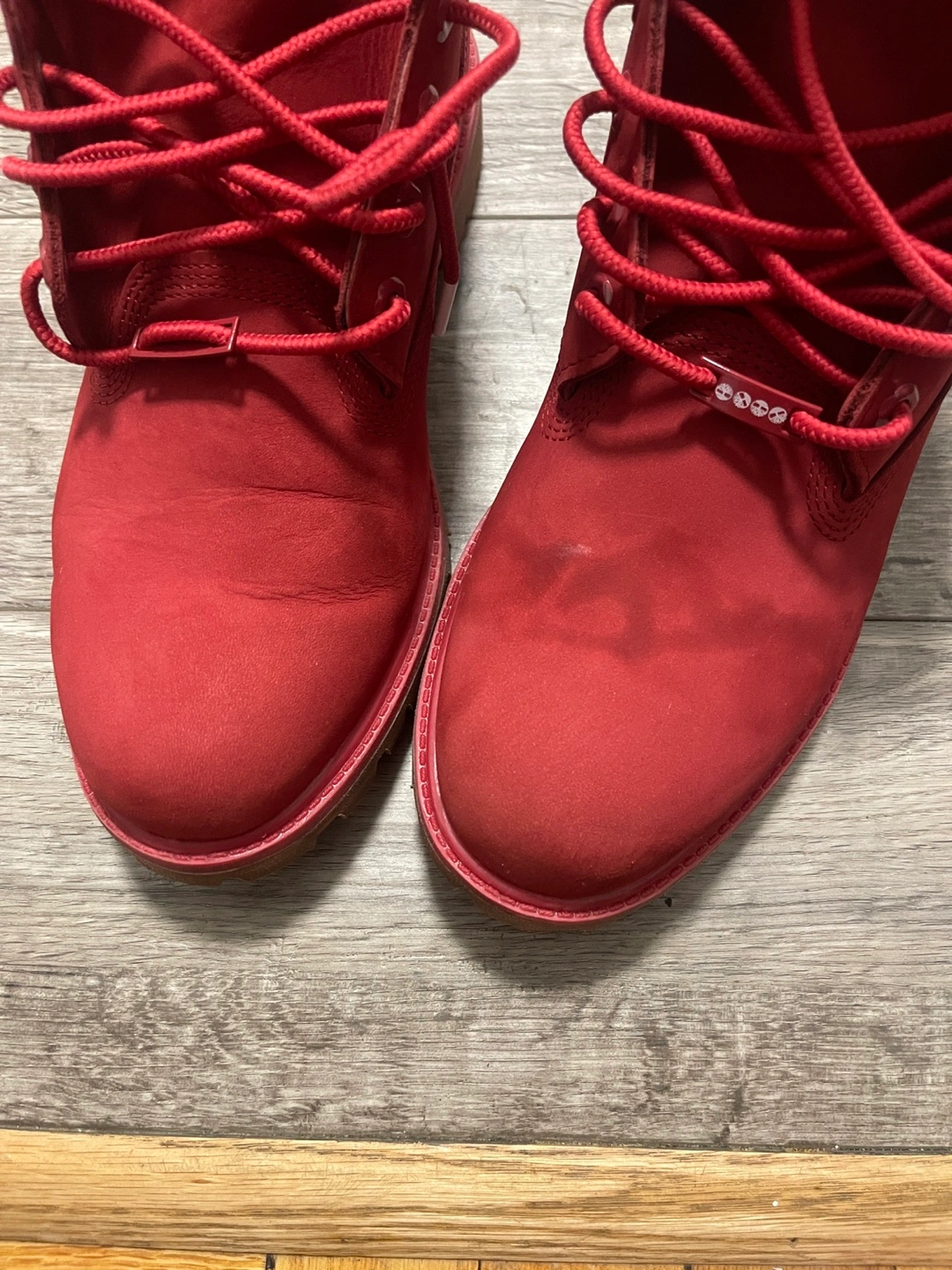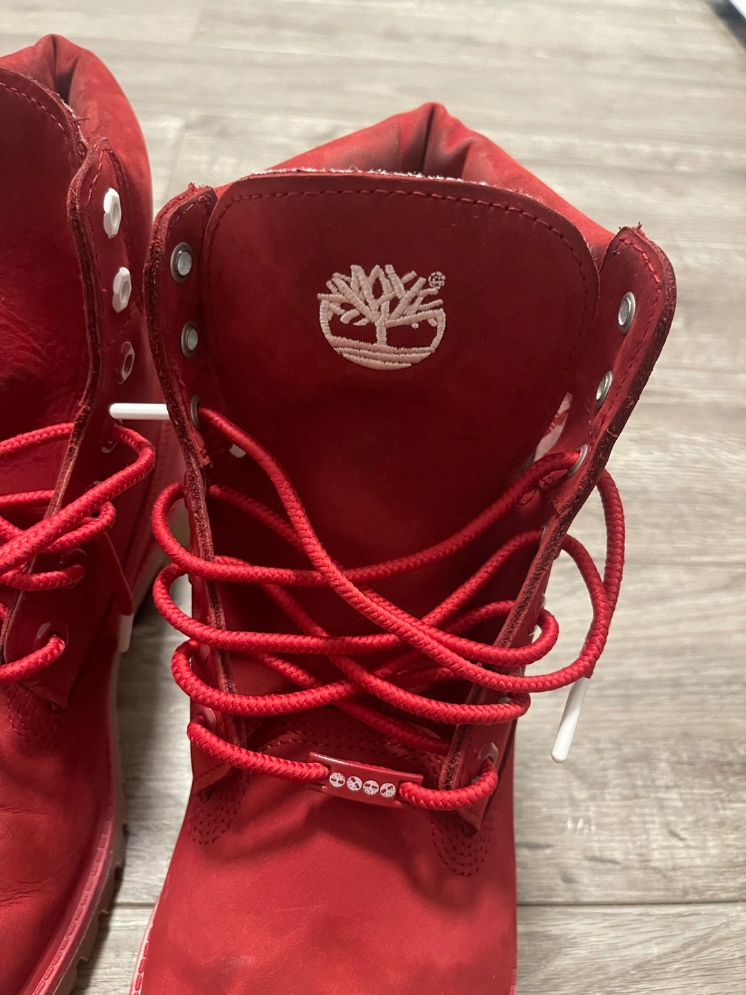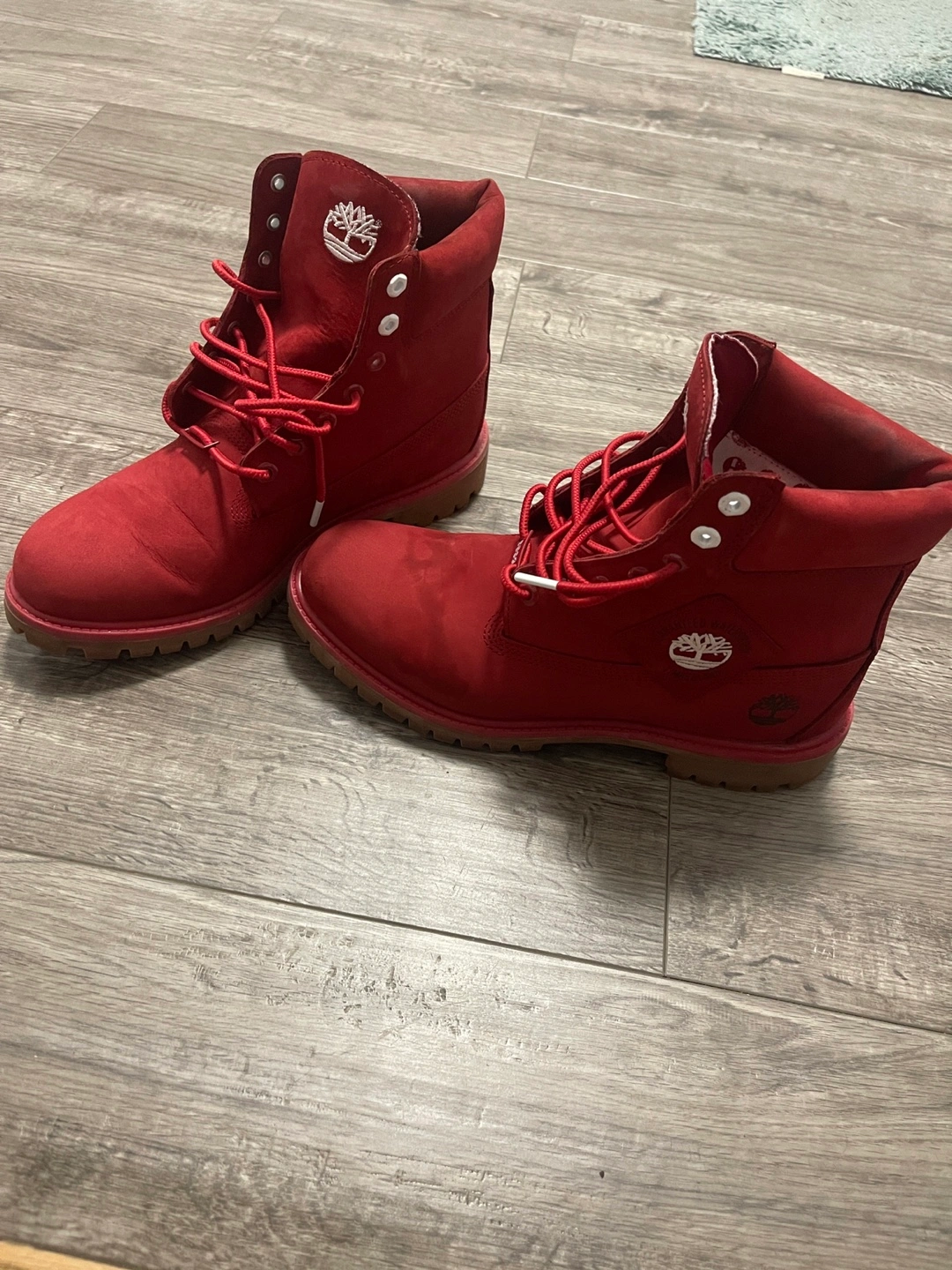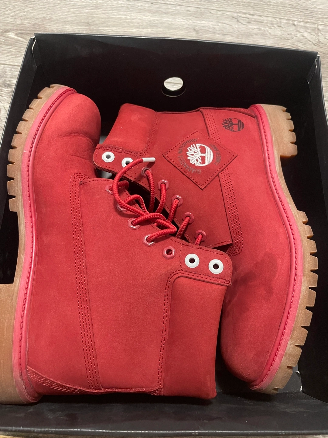 Selling a pair of Timberland Premium 6-inch Waterproof Boots in a dark red nubuck colour. They are a men's size 11. These boots are in good condition and ready for a new home!