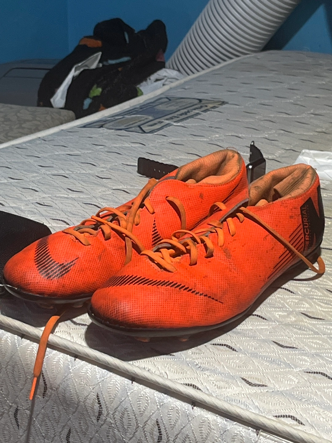 Selling a pair of orange Nike Mercurial soccer cleats. They show some signs of use, but still have plenty of life left for the field! Perfect for your next game or practice