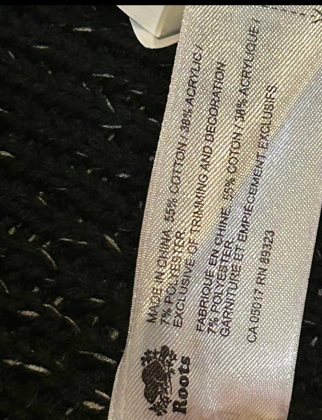It's made of 55% cotton, 38% acrylic, and 7% polyester. Perfect for layering on those cooler days!