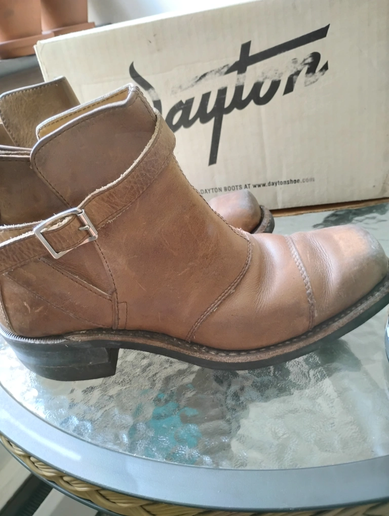 Dayton boots in brown leather they are excellent condition.Canadianmade.