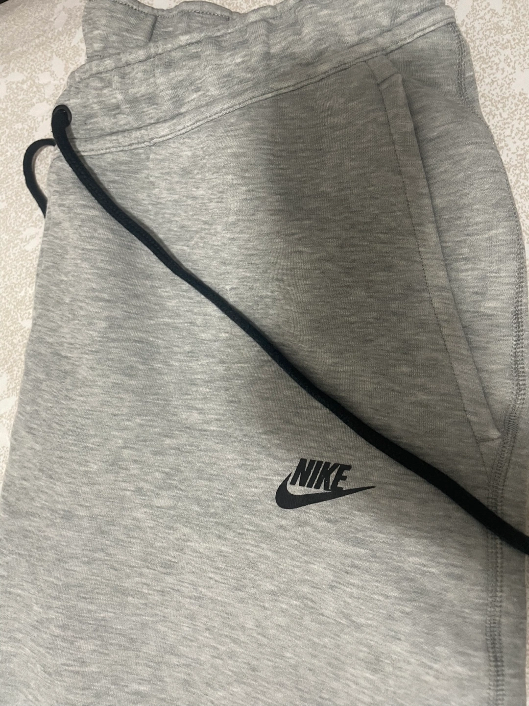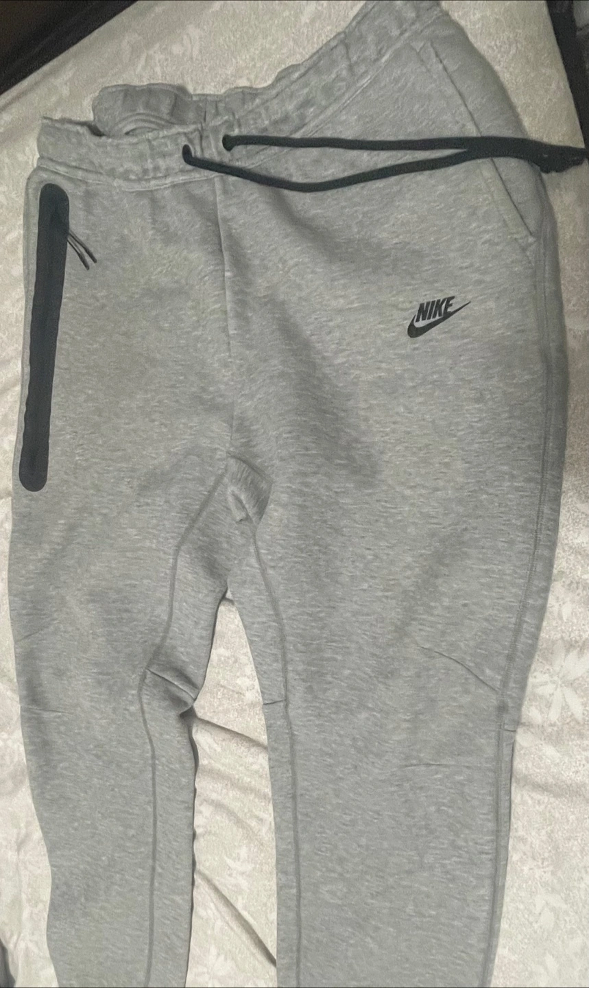 Selling a pair of Nike Tech Fleece pants in grey. They're in great condition and super comfy for lounging or hitting the gym! The material is soft and lightweight, perfect for everyday wear