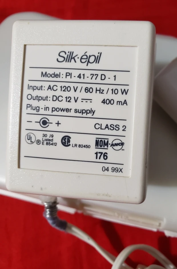 Selling a working condition epilator Silk-épil. The model number on the power supply is PI-41-77 D-1. Please note the condition of the cord in the photos you need to buy another cord