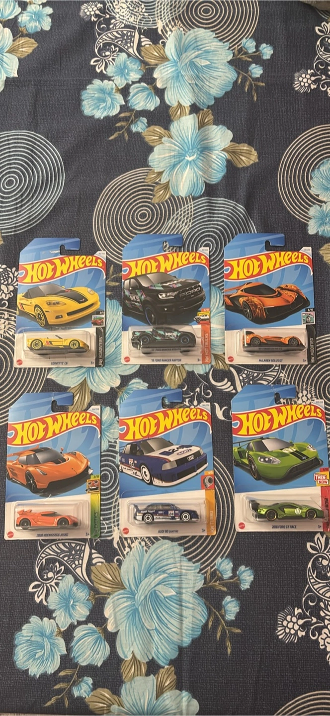Selling a collection of Hot Wheels diecast cars! Includes: - All for 20$ or 1 for 5$ - Corvette C8 - '19 Ford Ranger Raptor - McLaren Solus GT - 2020 Koenigsegg Jesko - Audi 90 Quattro - 2016 Ford GT Race Perfect for collectors or kids! -only accepting cash and pickup is at my house. -Not accepting any trades only selling.