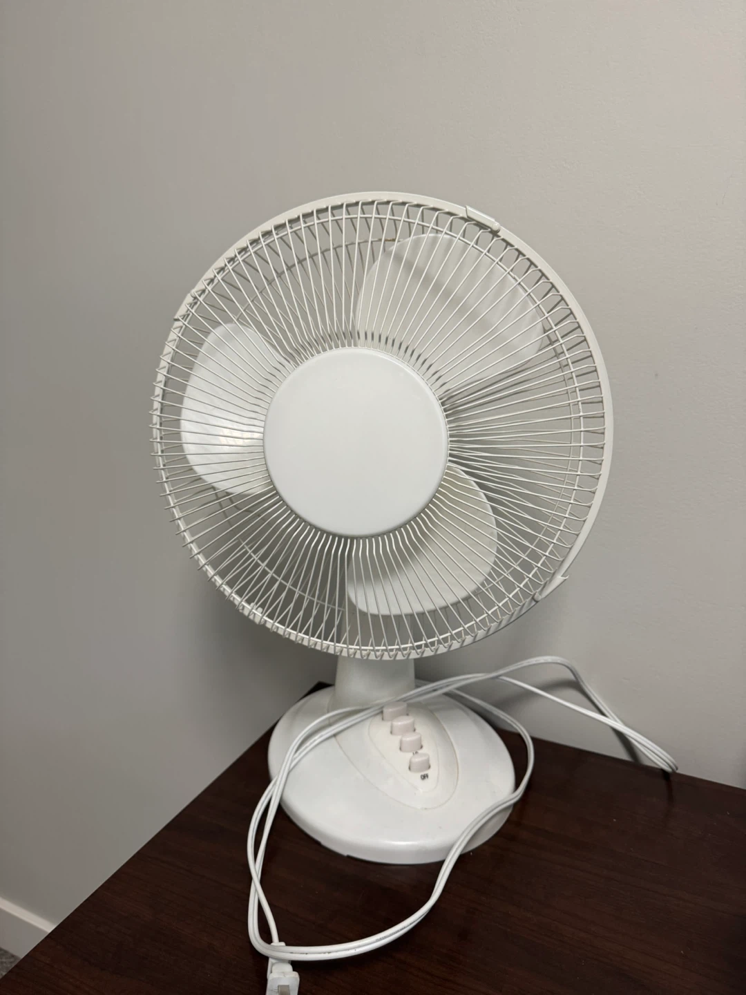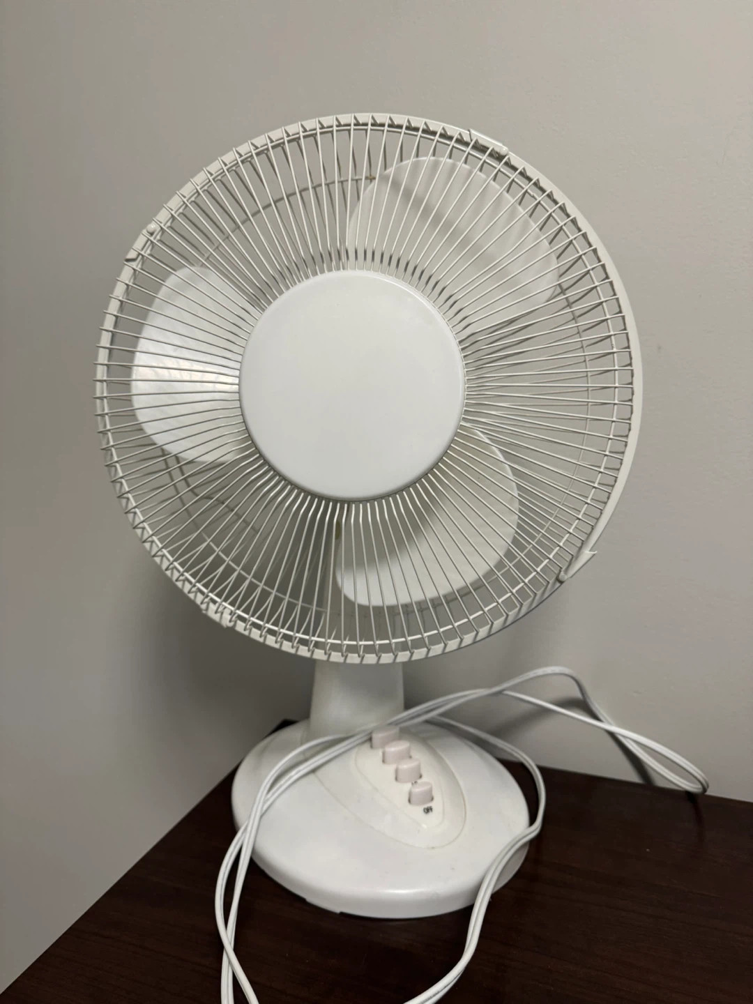 Selling a simple white table fan! It's in good working condition and perfect for keeping cool. It has a few speed settings to choose from, so you can adjust it to your liking