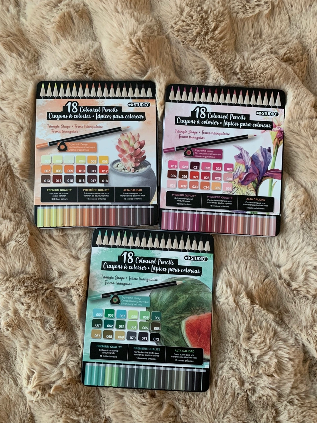 Selling a set of Studio coloured pencils, which includes 54 pencils in total! These are premium quality pencils, with triangular shapes for an ergonomic design. Perfect for artists or anyone who enjoys colouring