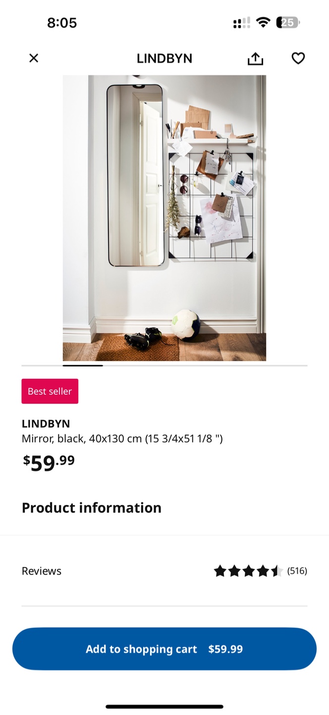 Selling an IKEA Lindbyn mirror in black. It's in great shape and ready to add a touch of style to your space! The dimensions are 40x130 cm (15 3/4x51 1/8 ")