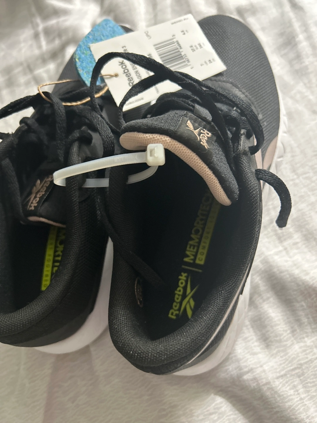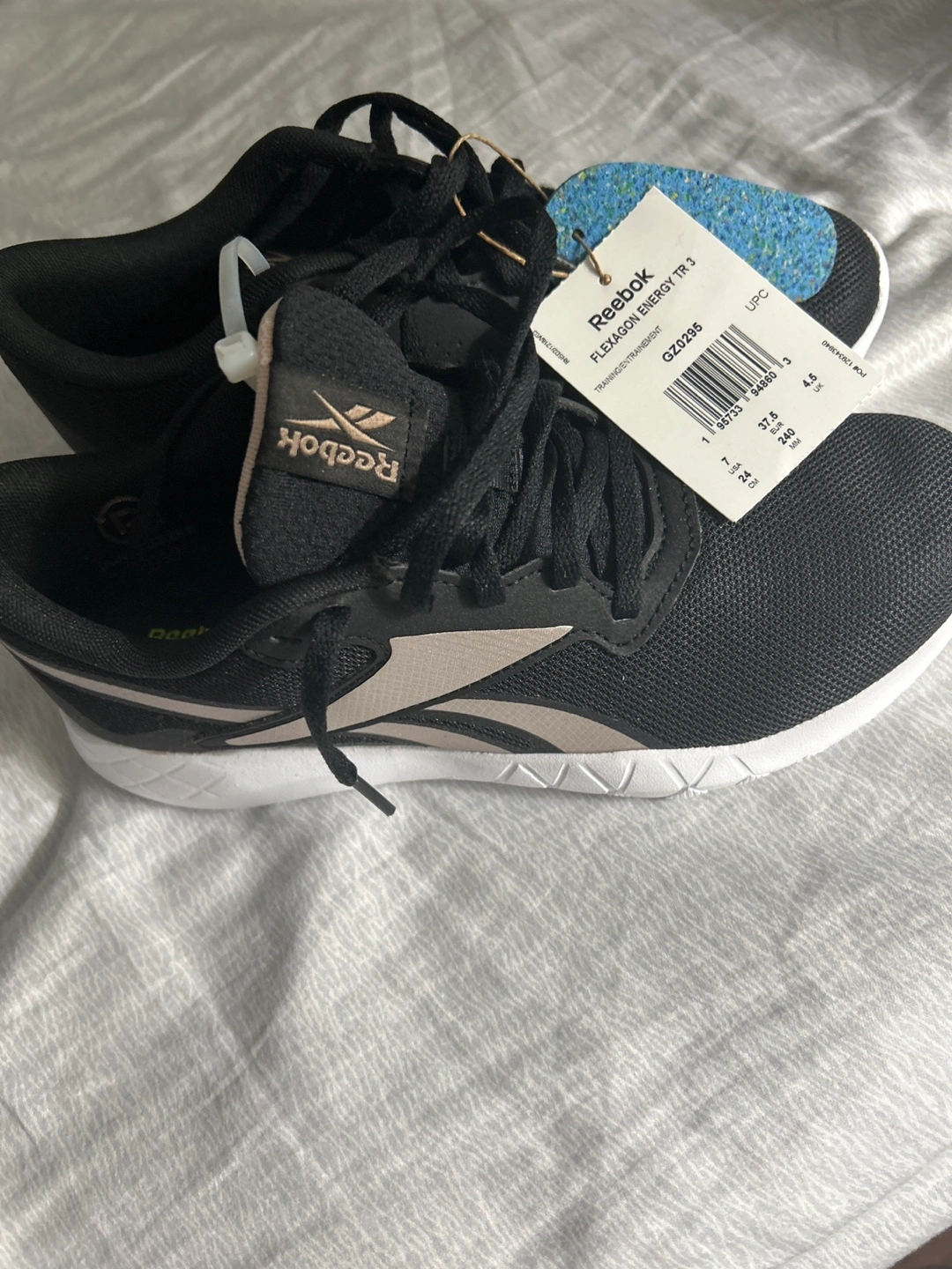 Selling a brand new pair of Reebok Flexagon Energy TR 3 training shoes! They are black with a white sole and rose gold accents. The size is a women's 7 US. These are great for training or everyday wear! Pick up area, Bayview and Sheppard