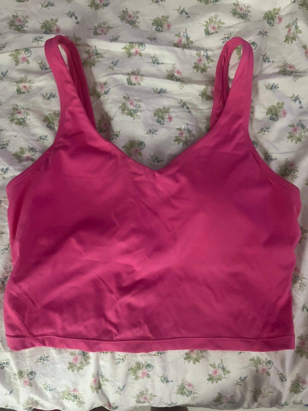 Selling a pink workout tank top. It's in great condition and perfect for any workout! The material feels soft and comfortable against the skin. A great addition to your activewear collection