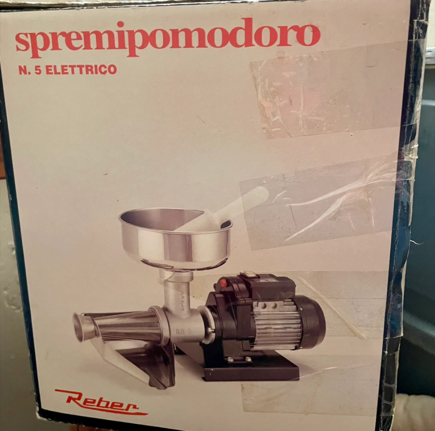 Selling a Reber Spremipomodoro N. 5 Elettrico tomato press! This electric machine is designed for making tomato puree, sauces, jams, and juices. It efficiently separates and removes seeds and skin from tomatoes and other soft fruits. Reber tomato squeezers are known for their heavy-duty design and suitability for high-volume production. For additional best offer, can also include the other items needed for bottling tomatoes such as propane burner, extra large pot, etc.
