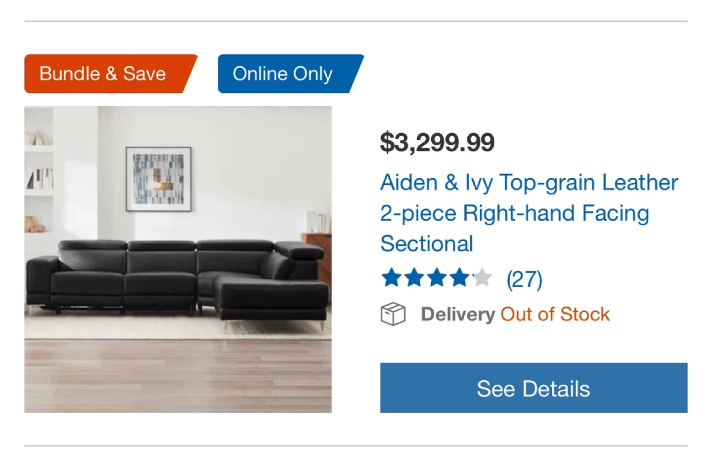 Selling an Aiden & Ivy top-grain leather 2-piece right-hand facing sectional! It's a stylish and comfortable addition to any living space. The sectional is in great condition and ready for a new home. Originally bought for $3,299.99.