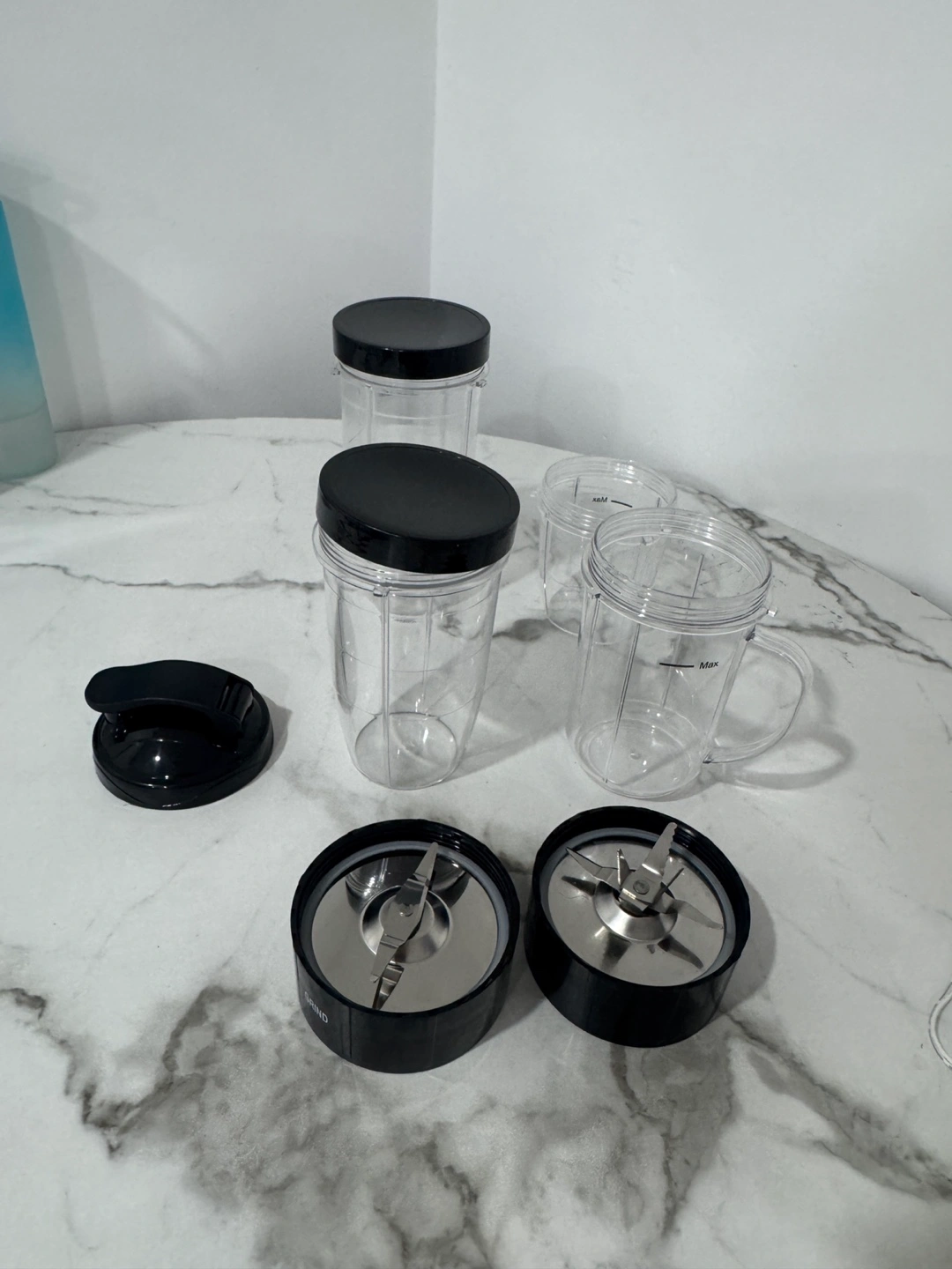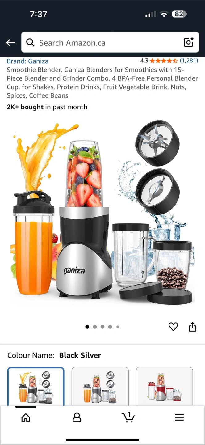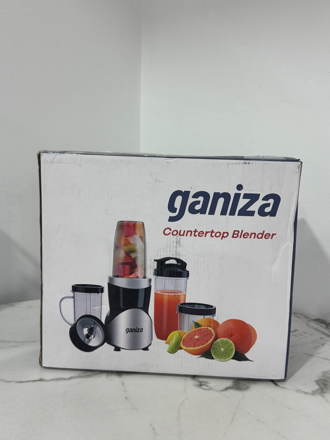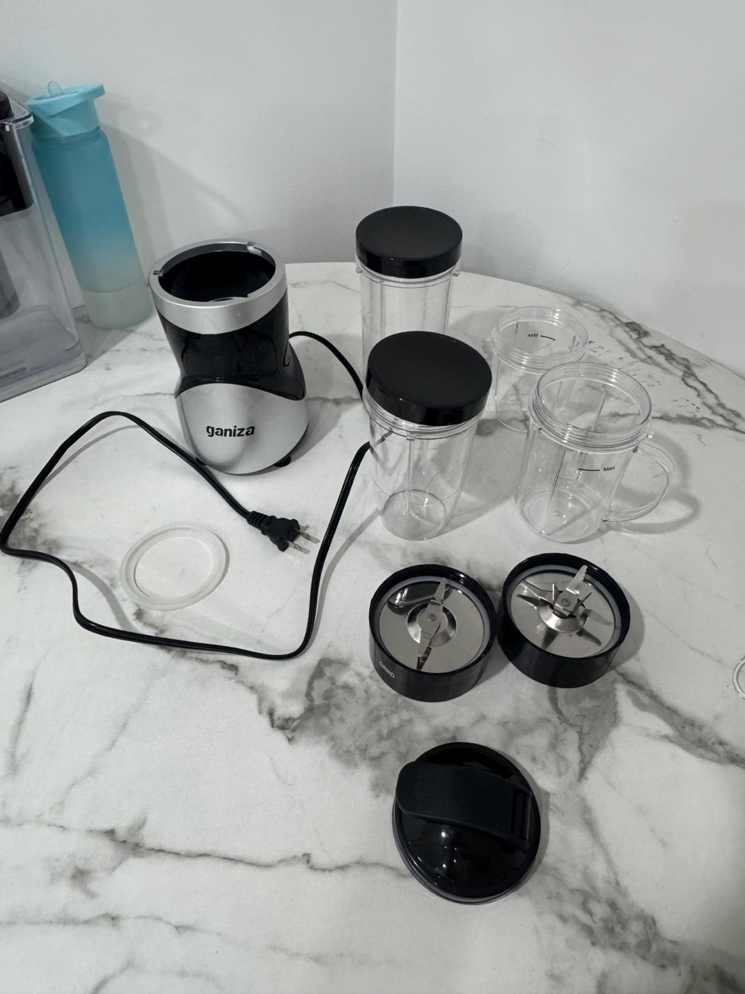 Selling a Ganiza smoothie blender set! It comes with the blender base, two blade attachments, and four different sized cups for all your smoothie needs. The box is included as well!