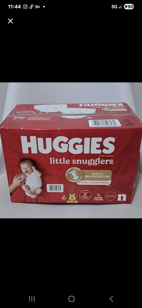 Selling a new box of Huggies Little Snugglers diapers! This box contains 76 diapers in size N. They offer gentle skin protection and up to 12 hours of leak protection. Perfect for your little one!