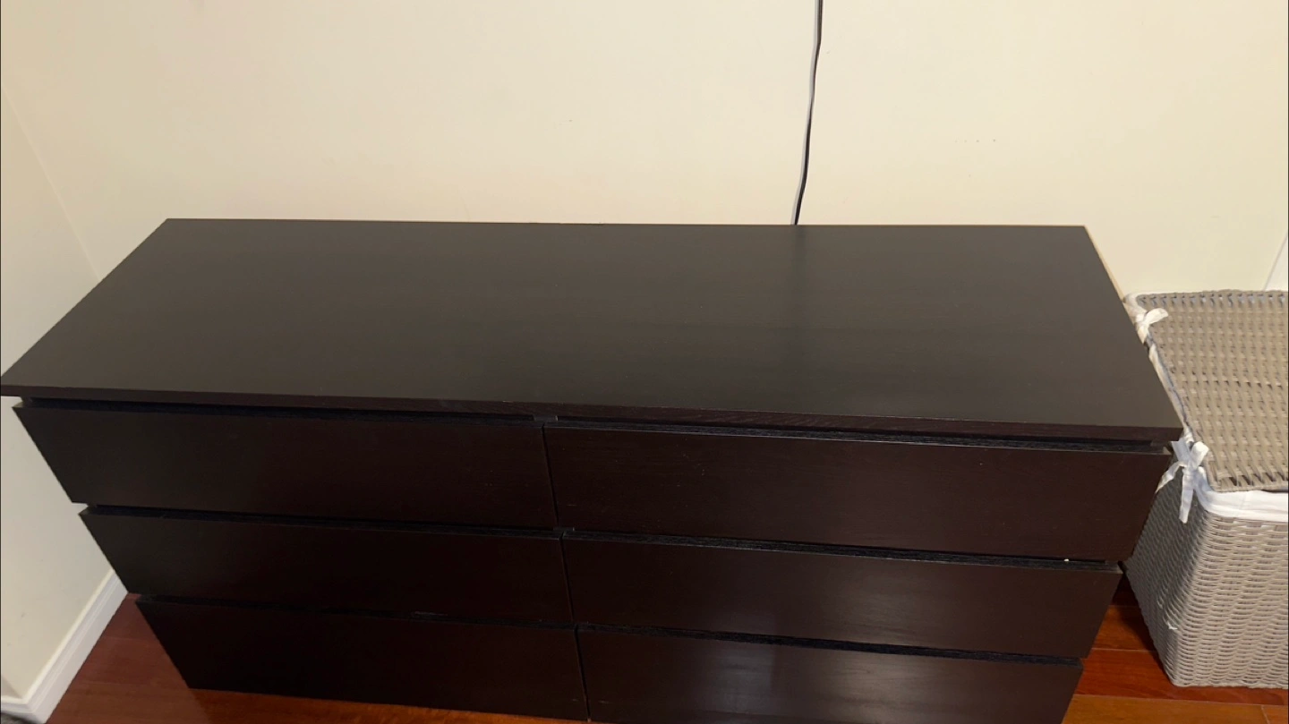 Selling two used IKEA Malm dresser in dark brown. It has some signs of use but is still in good condition and fully functional. Perfect for adding extra storage to your bedroom or living space!